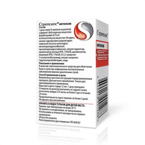 Описание . Стрепсилс® Интенсив, спрей для местного применения дозированный, 15 мл .