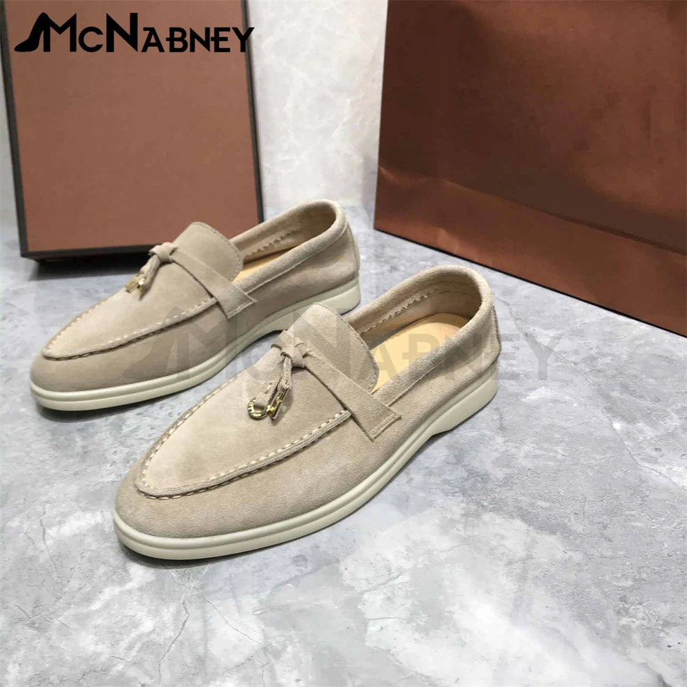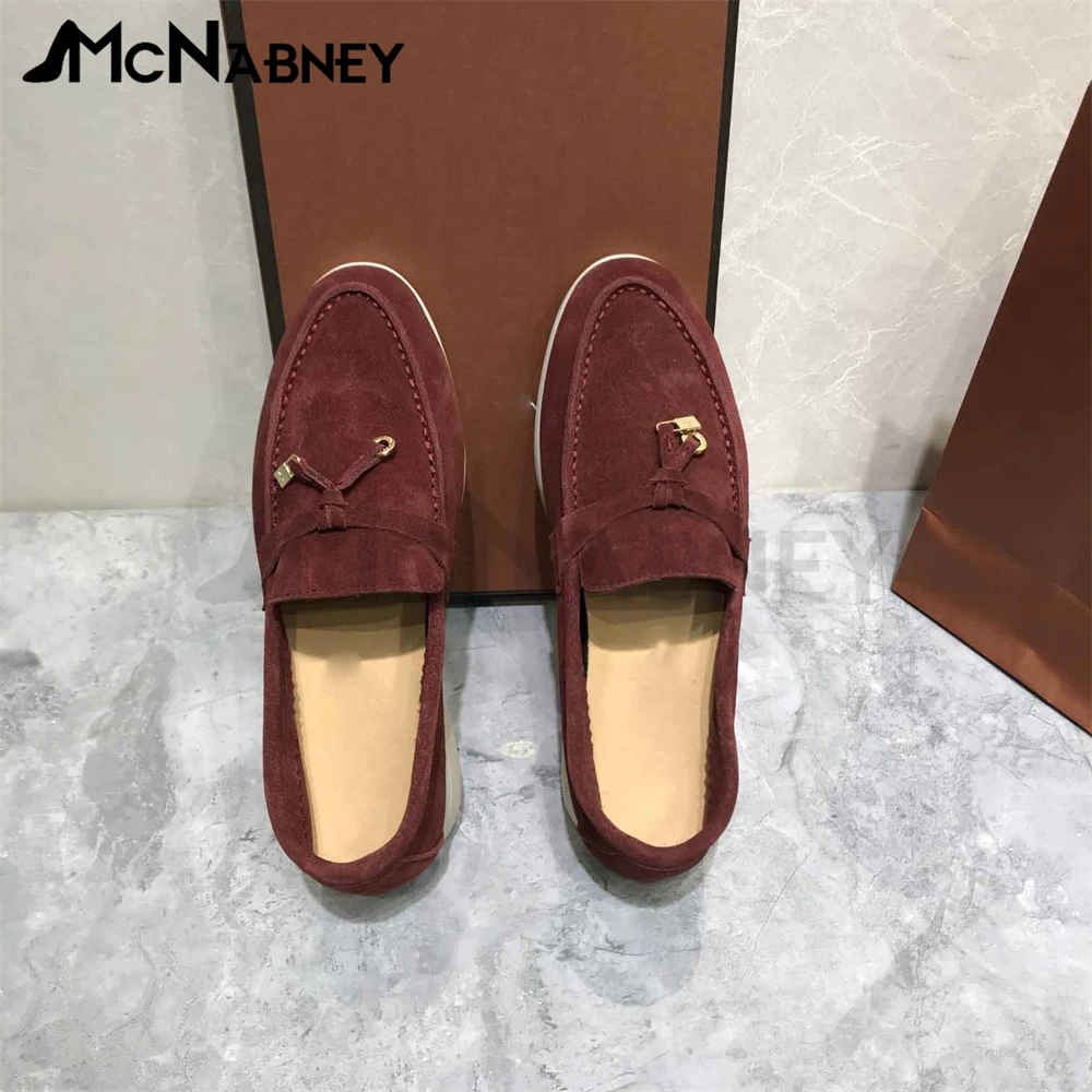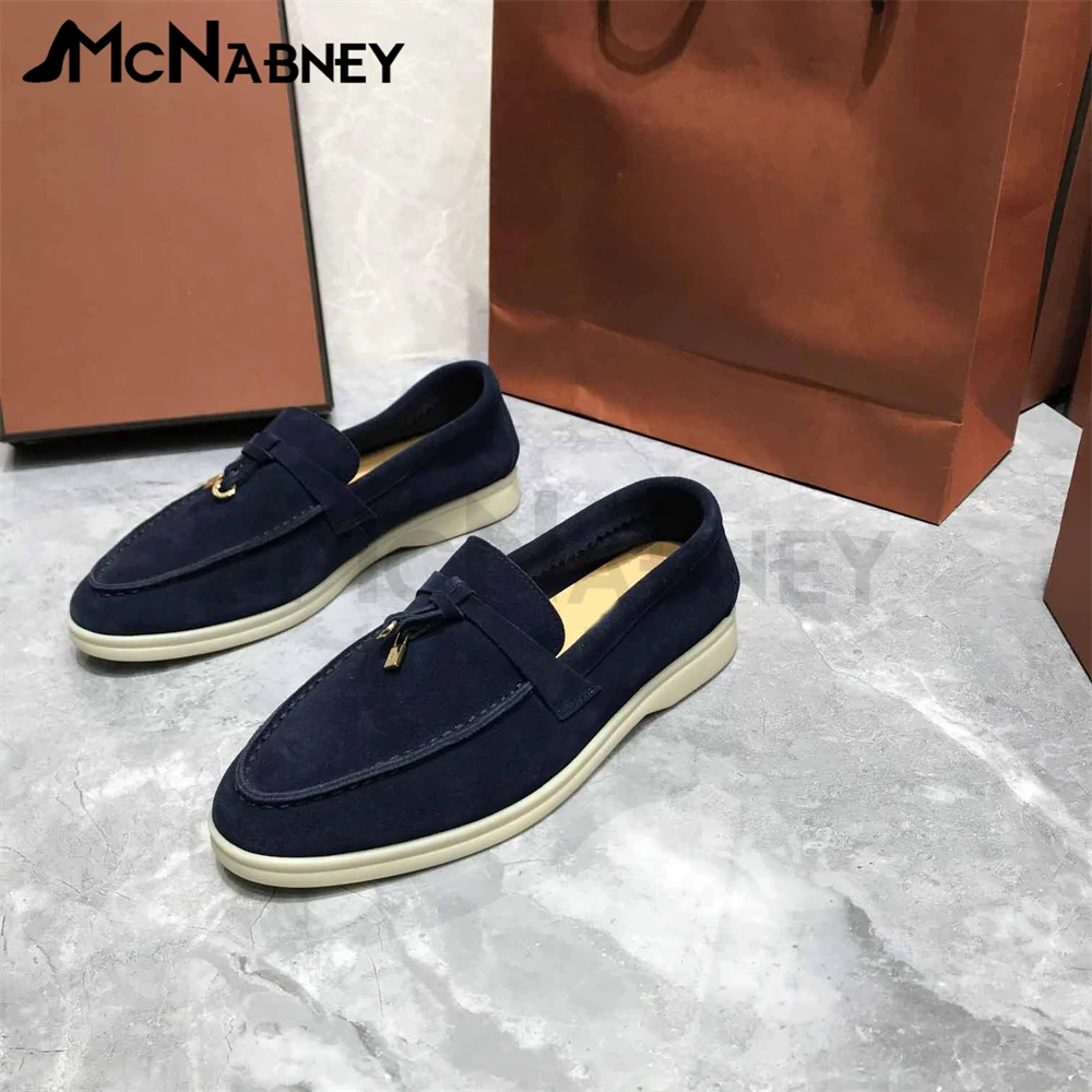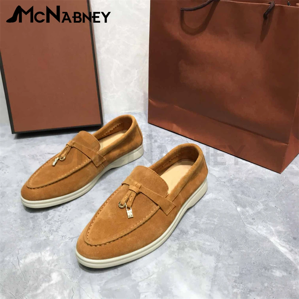Купить Suede Tassel Loafers Metal Lock Decorative Flat Shoes Comfortable Simple Solid Color Men and Women Shoes Round Toe Driving Shoes за 4350рублей
