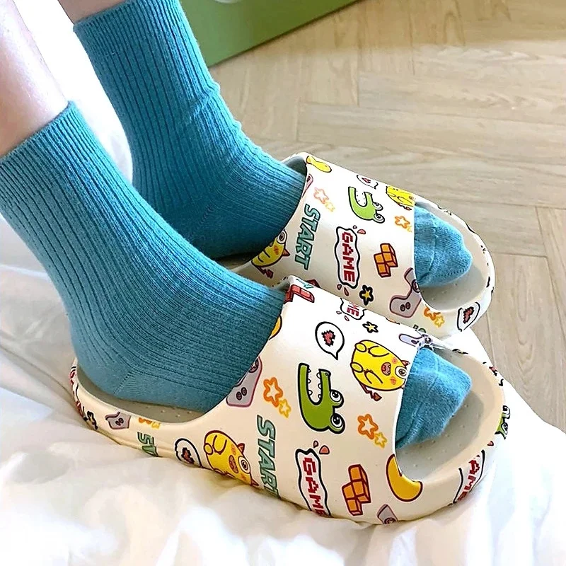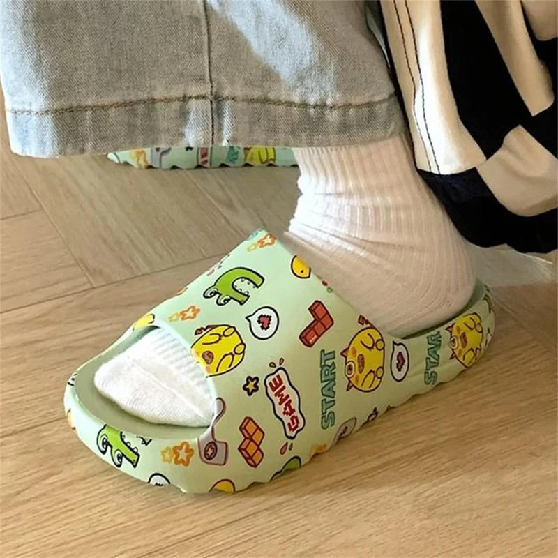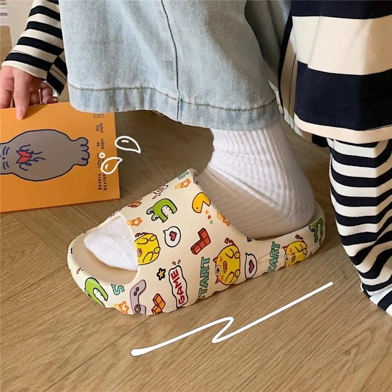 Купить Summer Cute Graffiti Women Non-Slip Shoes Comfortable Soft Platform Slippers Home Wading Slides Color Printing Bathroom Slippers за 650рублей