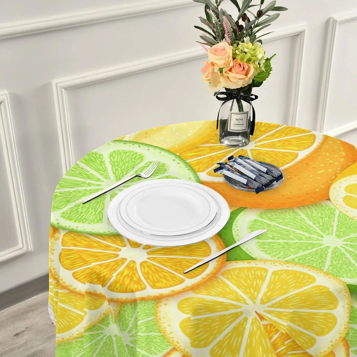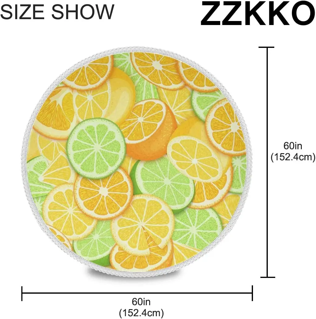 Купить Summer Lemon Round Tablecloths 60" Tropical Orange Table Cloth Cover Mat Lace Washable Polyester for Dinner Party Holiday Decor за 400рублей