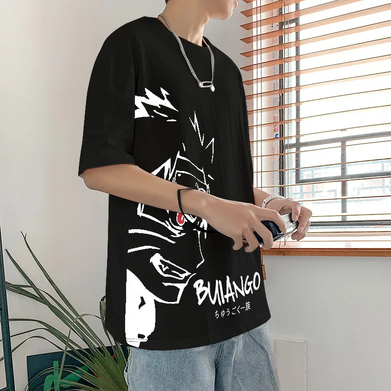 Купить Summer Men's Printed Japanese Anime Round Neck Short-Sleeved Tide Hong Kong Style Five-Point Sleeve Tide Brand Loose T-Shirt за 650рублей