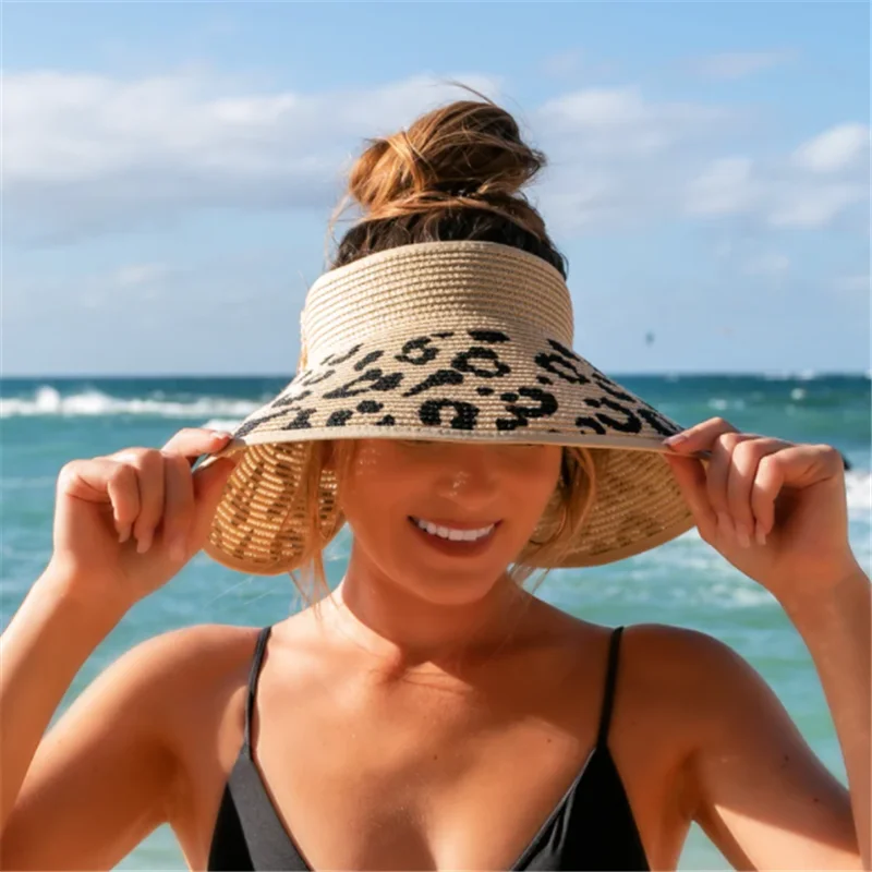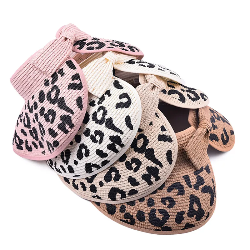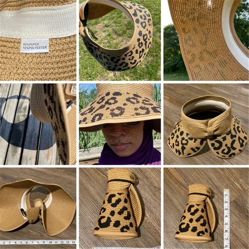 Купить Summer STRAW HAT FOR WOMAN Girls Ladies Leopard Bow Sun PROTECT Visor Rollable Foldable for Travel Straw Hat Beach Accessories за 400рублей