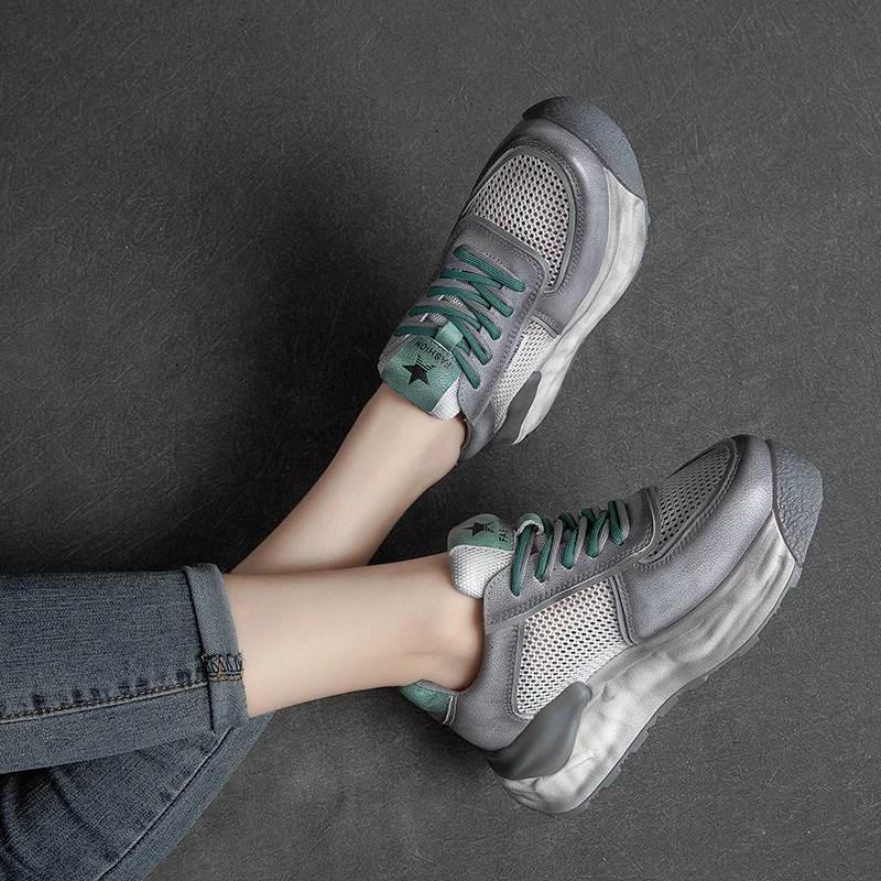 Купить Summer new thick bottomed round head rubbing color gentle wind muffin shoes front lace up versatile lazy shoes women's shoes9015 за 3100рублей