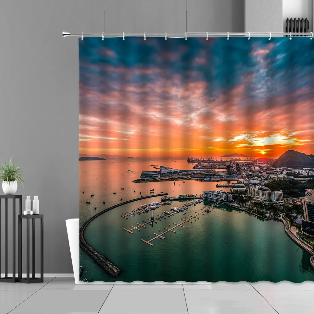 Купить Sunlight Ocean Beach Shower Curtains Bathroom Curtain Set Ship Sunset Dusk Nature Image Bath Screen Waterproof Polyester Fabric за 550рублей