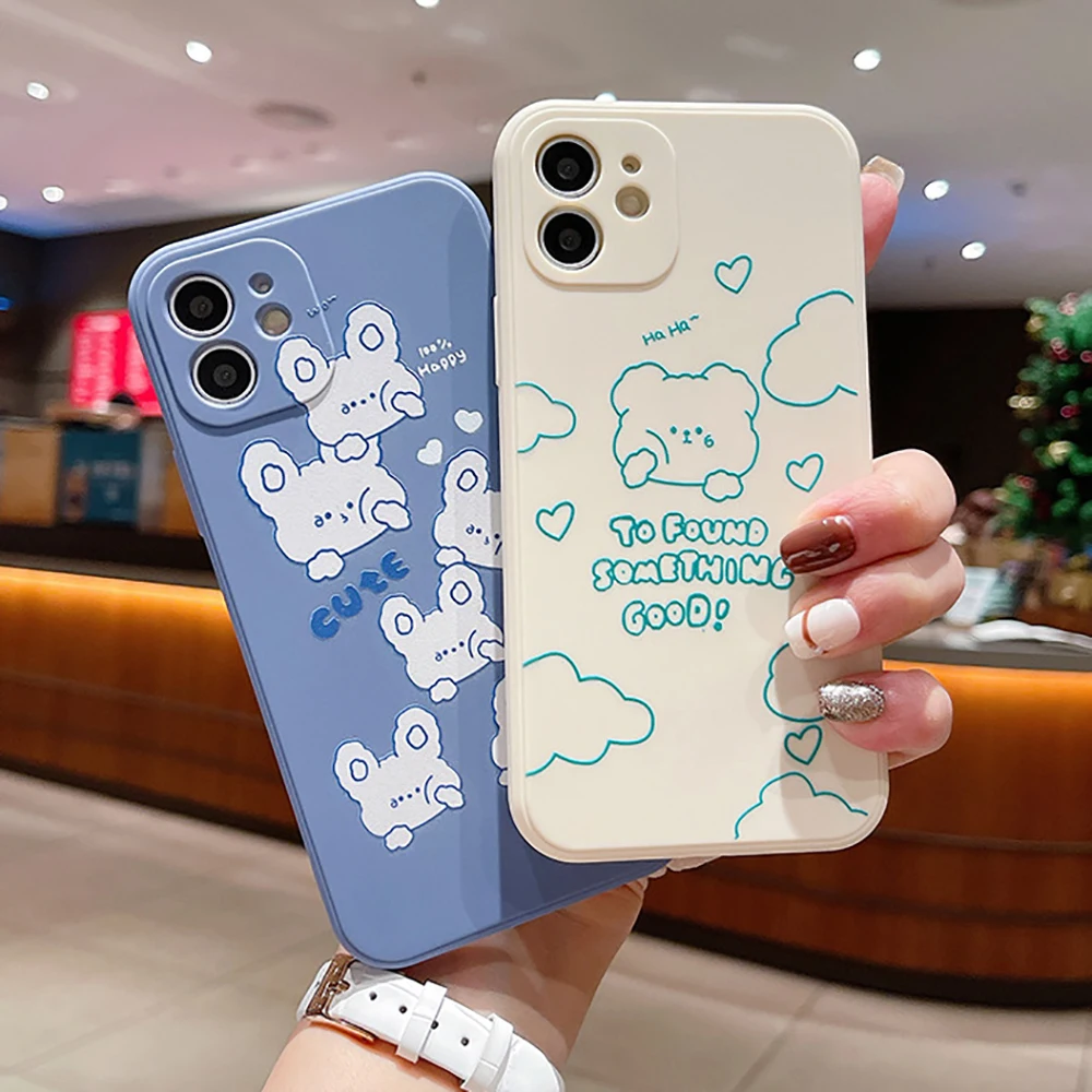 Купить Super Cute Rabbit Bear Phone Cases For Apple iPhone 13 12 11 Pro 12 13 Mini X XR XS Max 6 6S Plus 7 8 Plus Silicon Cover Fundas за 200рублей