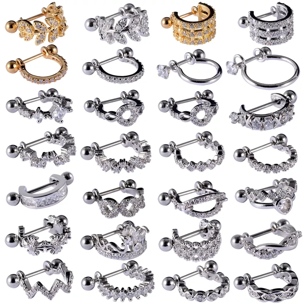 Купить Surgical Steel Barbell With CZ Hoop Ear Tragus Cartilage Helix Earrings Ear Studs Ear Cuff Rook Woman Lobe Piercing Jewelry за 650рублей
