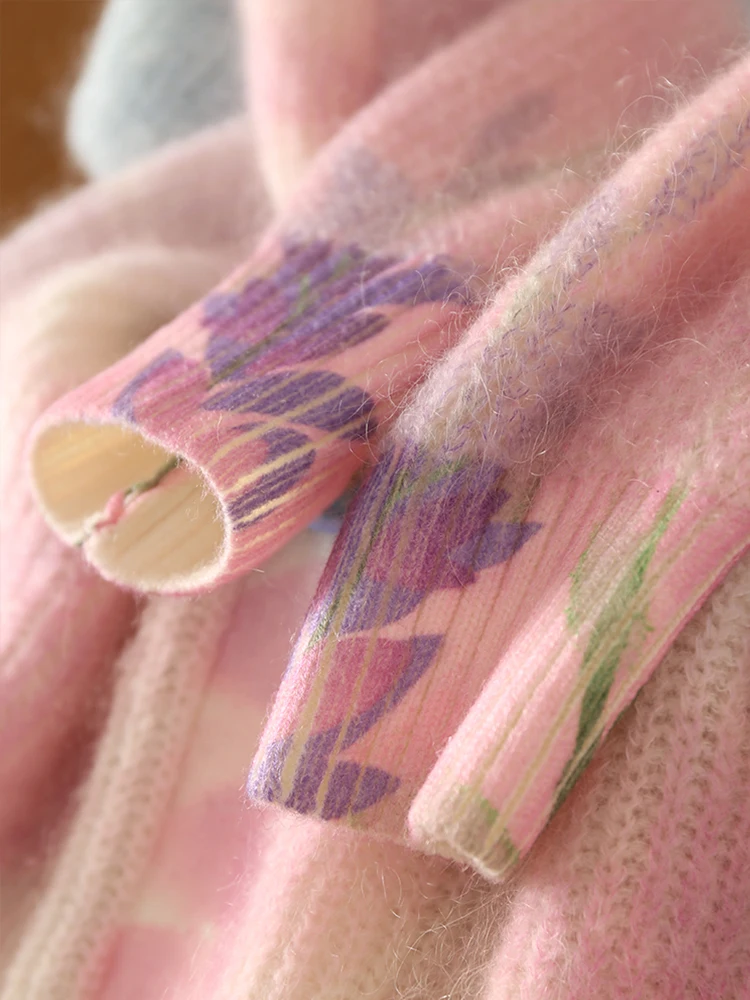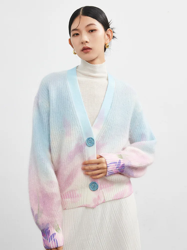Купить SuyaDream Wool Cardigans 28.8%Mohair 30.8%Wool V Neck Fashion Printed Sweaters 2022 Fall Winter Warm Jackets за 3100рублей