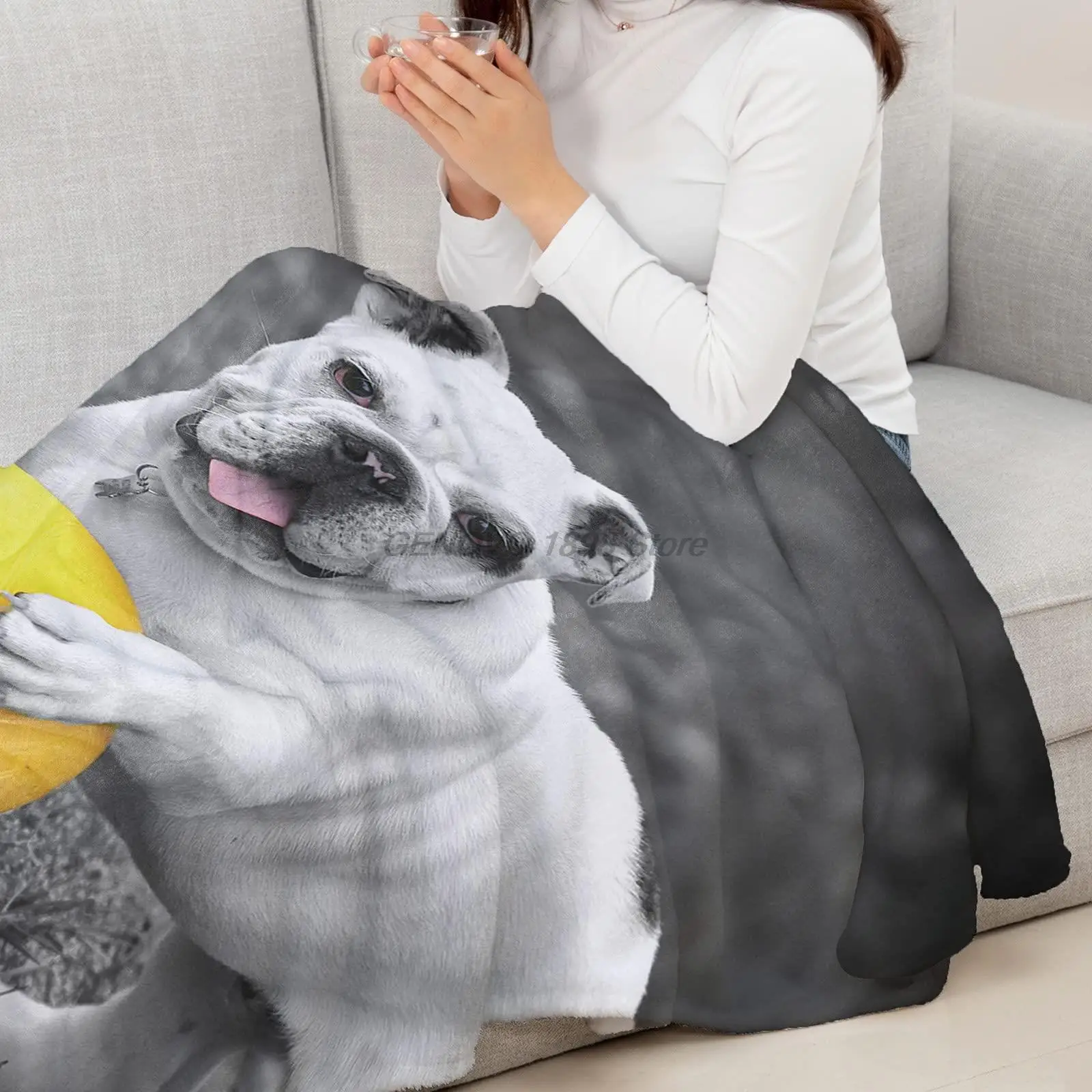 Купить Sweet - Home Fleece Throw Blanket Full Size, French Bulldog Playing Ball Grey Background Lightweight Flannel Blankets for Couch за 700рублей