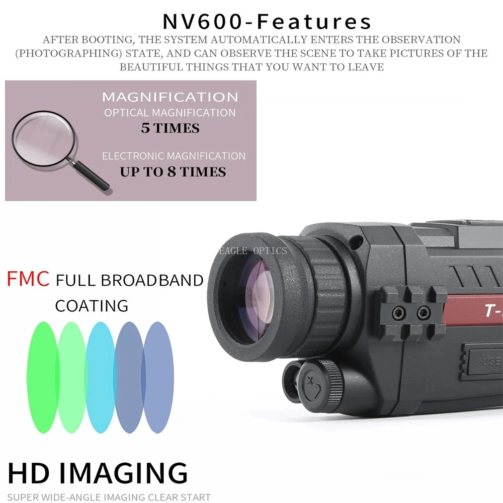 Купить T-EAGLE NV600 Monoculars Infared Night Vision Scope Digital Vedio Record Hunting Cameras Magnification8 8G TF Card 200M Range за 5800рублей