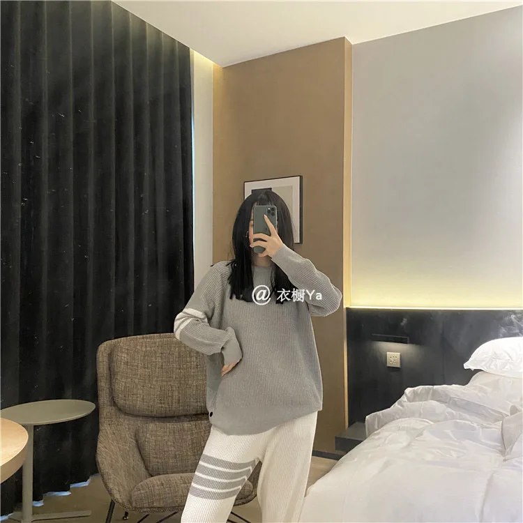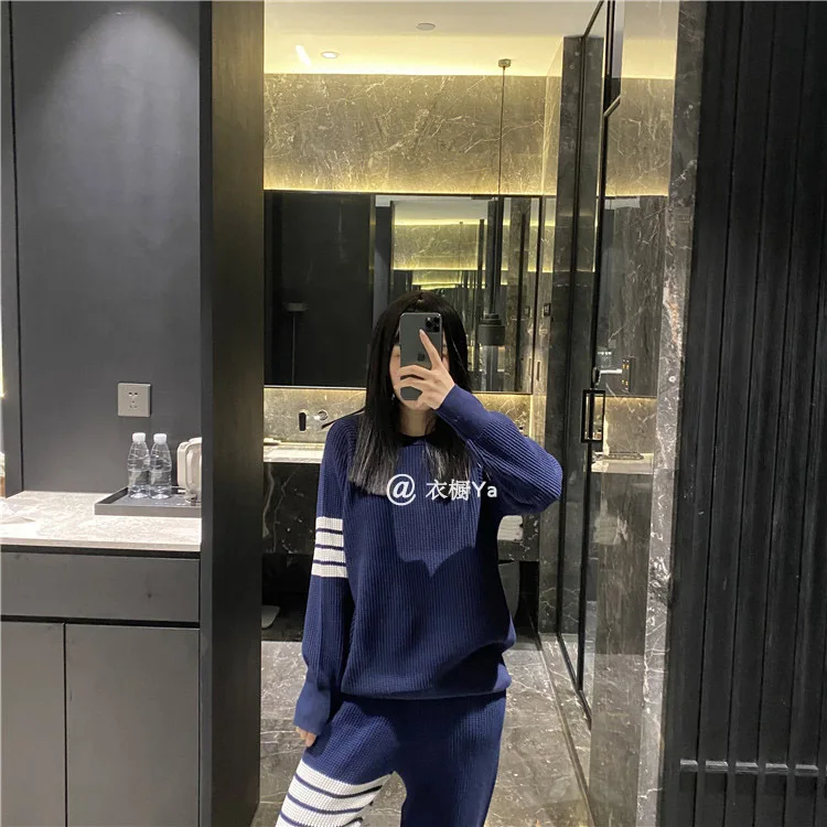 Купить TB College Wind Waffle Pullover Round Neck Sweater Leisure Sports Four Bars Webbing Sweater Net Red Spring за 2150рублей