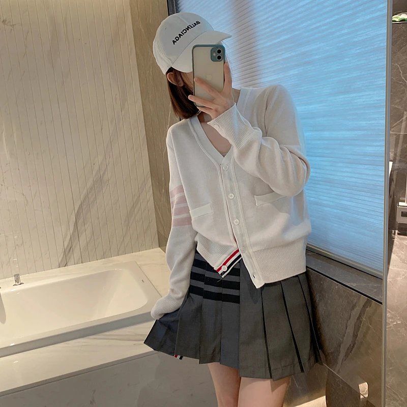 Купить TB Matchmaker Walking Dog Four Bar Knitted Cardigan Women Thom Loose Relaxed Color Contrast V-Neck Long Sleeve Wool Coat за 2200рублей
