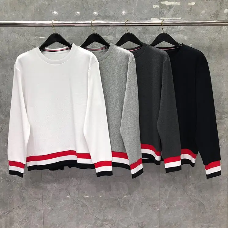 Купить TB Pullover Coat Man New Spring Autumn Clothing Cotton Casual Jacket Men Women Sweatshirts Striped O-Neck Waffle Pullover Coat за 2950рублей