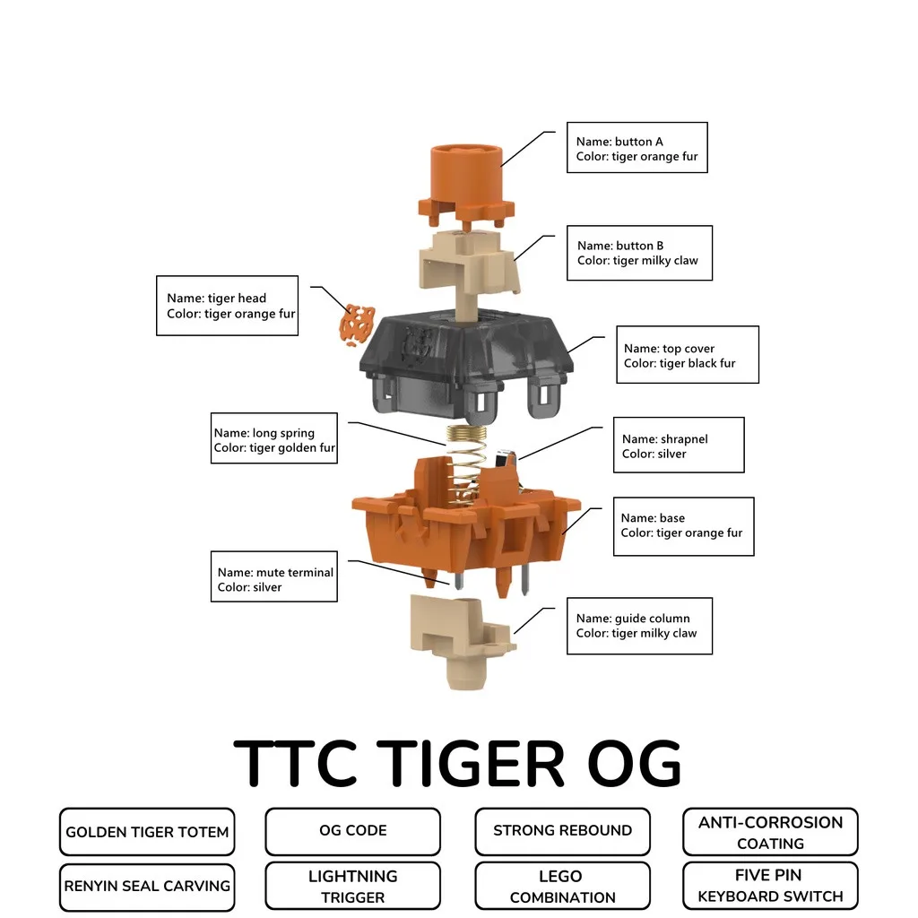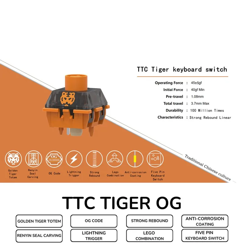 Купить TTC Tiger OG Limited Edition Keyboard Switch 25.5mm Super Long Strong Rebound Spring 1.08mm Pre Travel for Mechanical Bag/Box за 450рублей