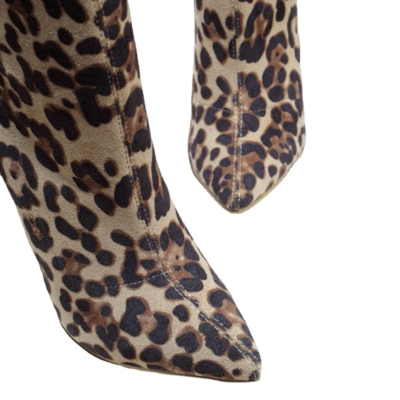Купить Ta Jiang autumn and winter socks boots 2021 new leopard print high-heeled boots European and American pointed suede women's boot за 3550рублей