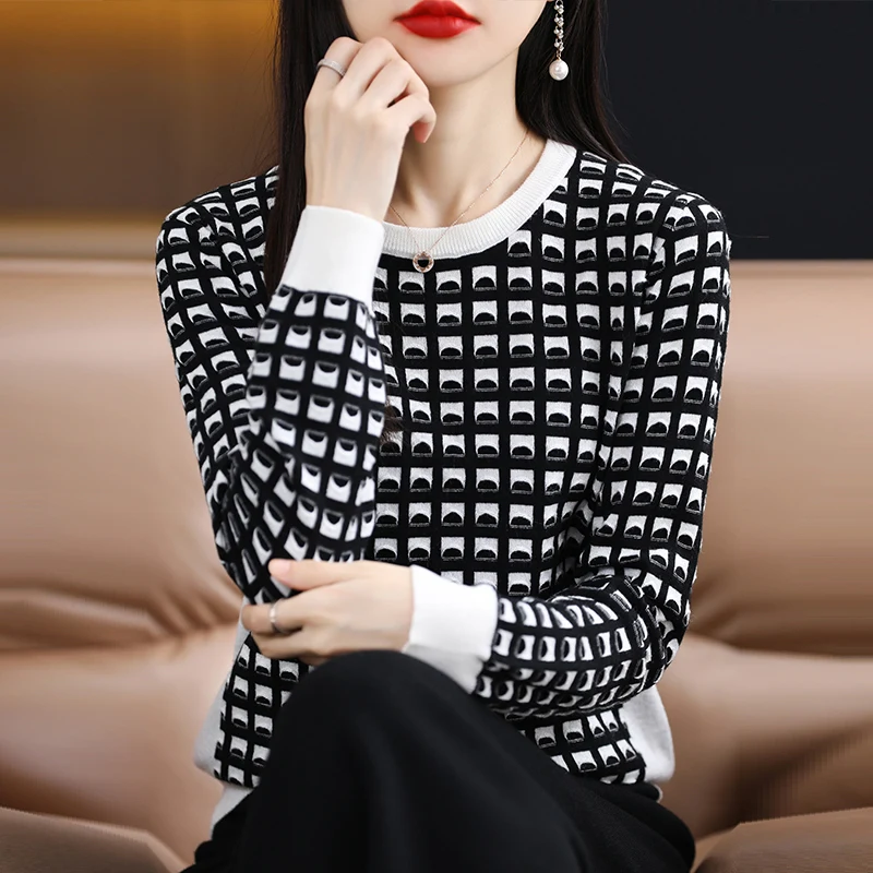 Купить Thickened Round Neck Sweater Women's Autumn And Winter Loose Wool Bottoming Sweater 2022 New Color Matching Jacket за 1750рублей