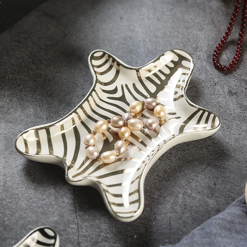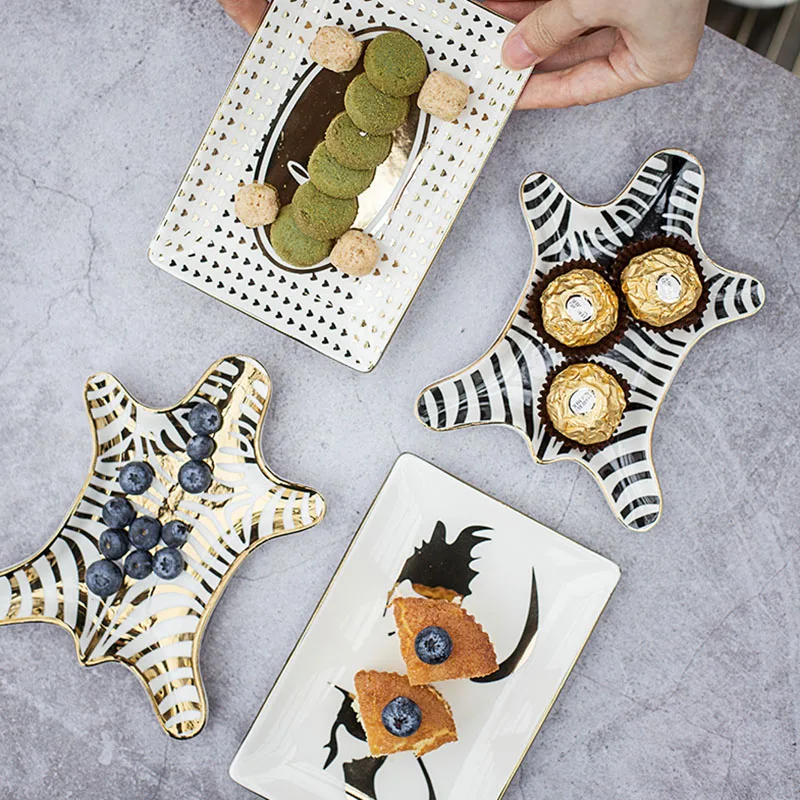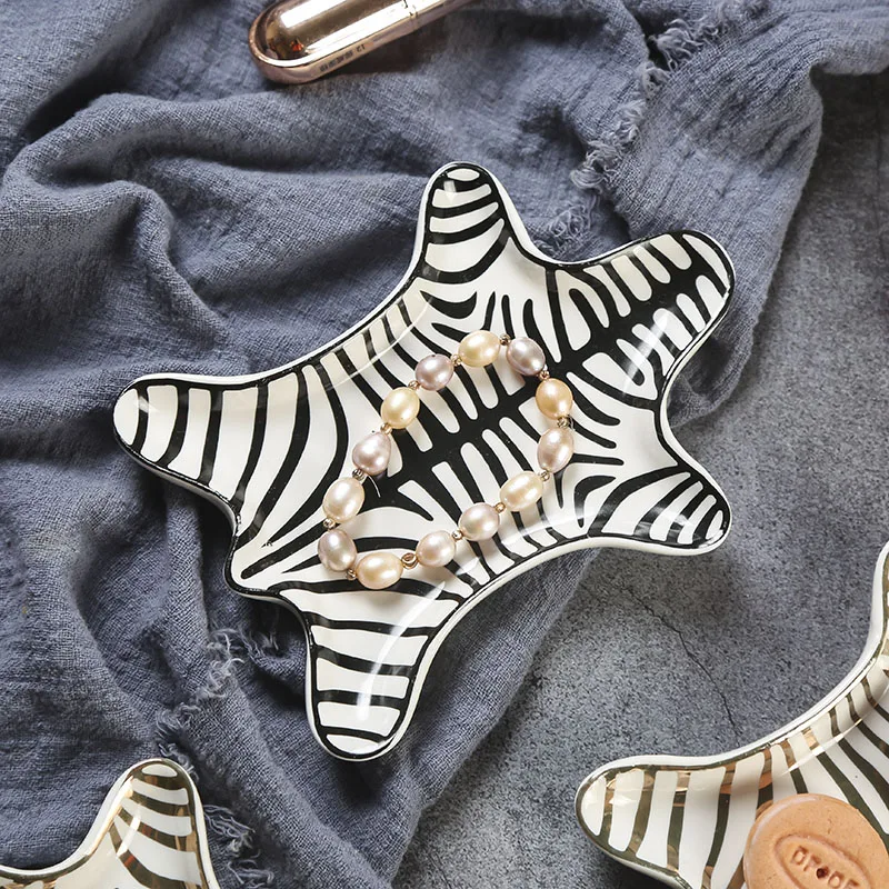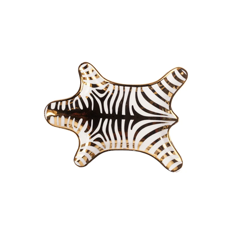 Купить Tiger Skin Pattern Ceramic Plate Nordic Jewelry Plate Decoration Trench Gold Zebra Pattern Dressing Tray Snack Plate Ornaments за 800рублей