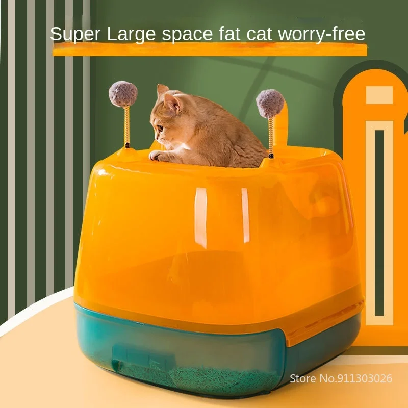 Купить Top Entry Cat Litter Box with Drawer Fully Enclosed Splash Proof cute Funny Cat Ball Kitten Toilet Cats Potty Box Pet Supplies за 4950рублей