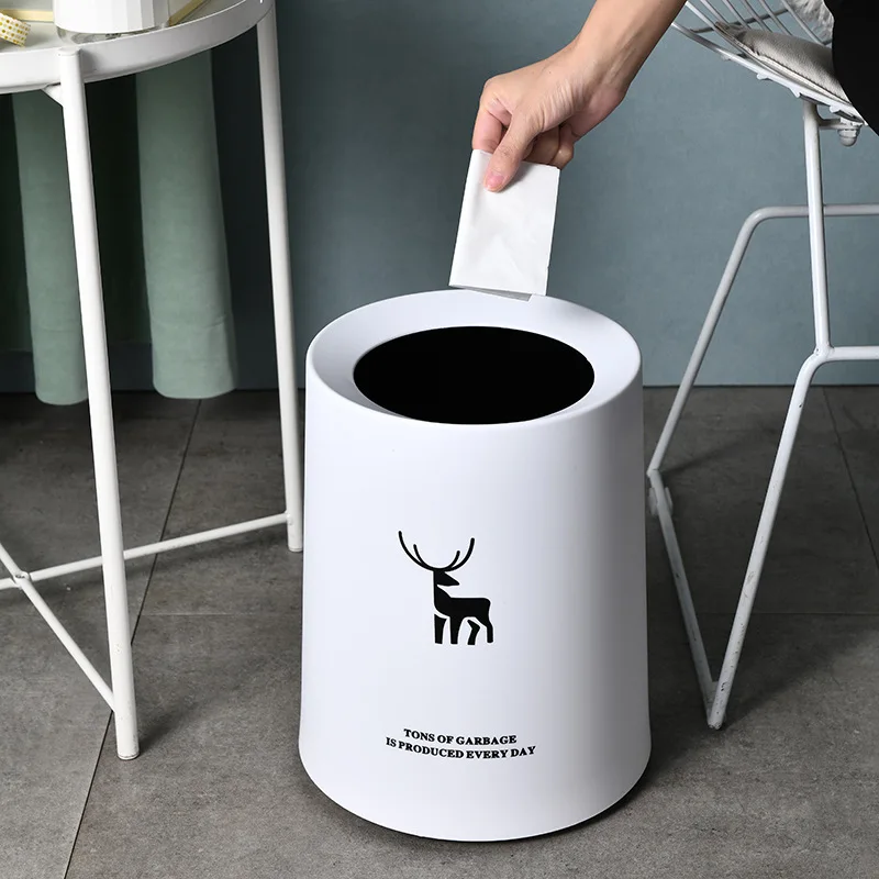 Купить Trash Can Household Large Living Room Double Layer Trash Can Bathroom Small Cabinet Room Without Cover Paper Basket Solid Color за 1700рублей