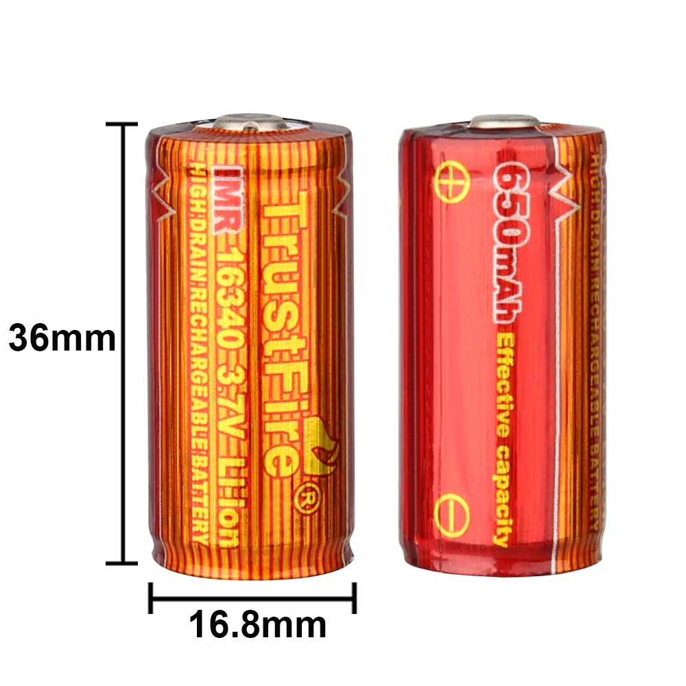 Купить TrustFire MC12 IMR 16340 650mAh Lithium Battery 3.7V High Drain Rechargeable Li ion Batteries Flat Top for Flashlight Toy Cells за 450рублей