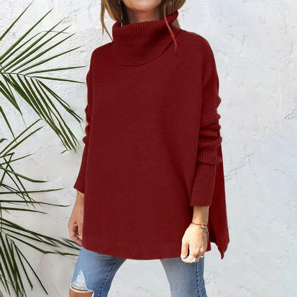 Купить Turtleneck Batwing Long Sleeve Side Split Ribbed Cuffs Pullover Sweater Winter Solid Color Oversized Warm Sweater Jumper Female за 450рублей