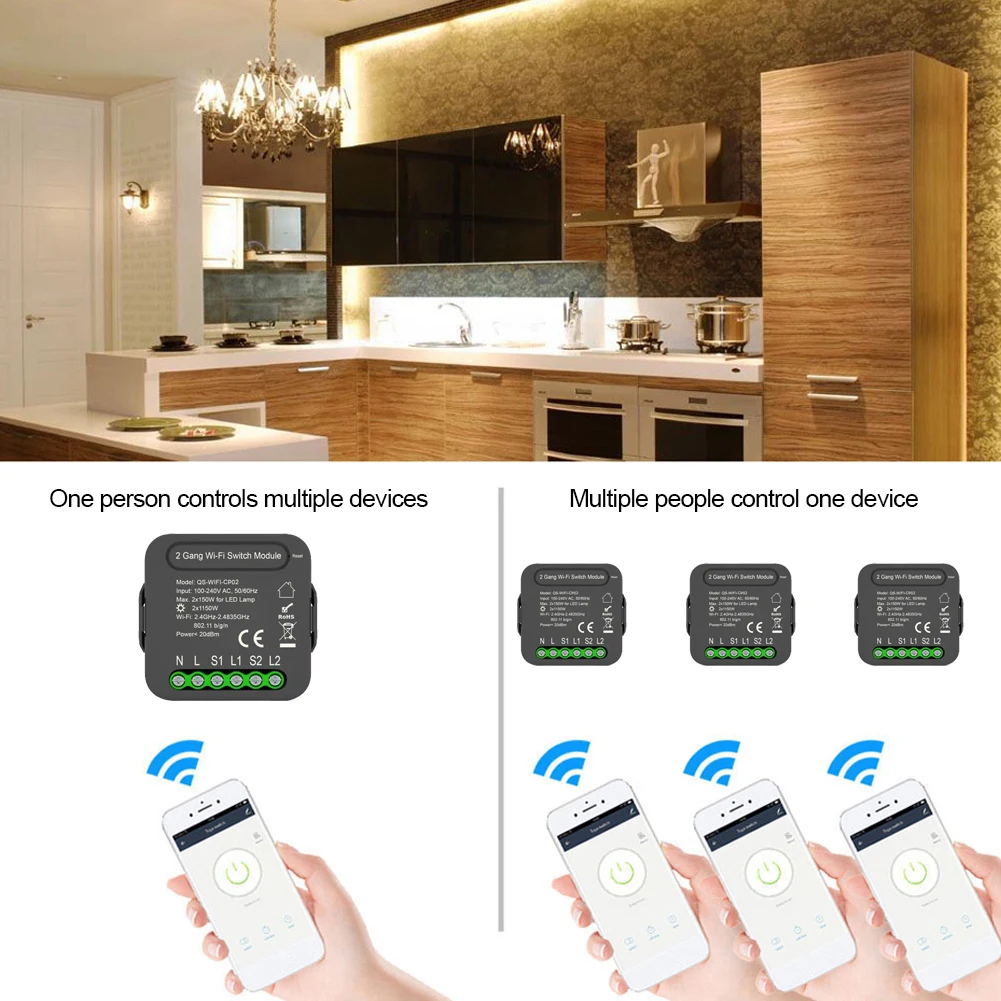 Купить Tuya WiFi Intelligent Switch Module with 1/2 gang 2 Way Control, Smart Life App Smart Home Relay Work for Google Home Alexa за 1000рублей