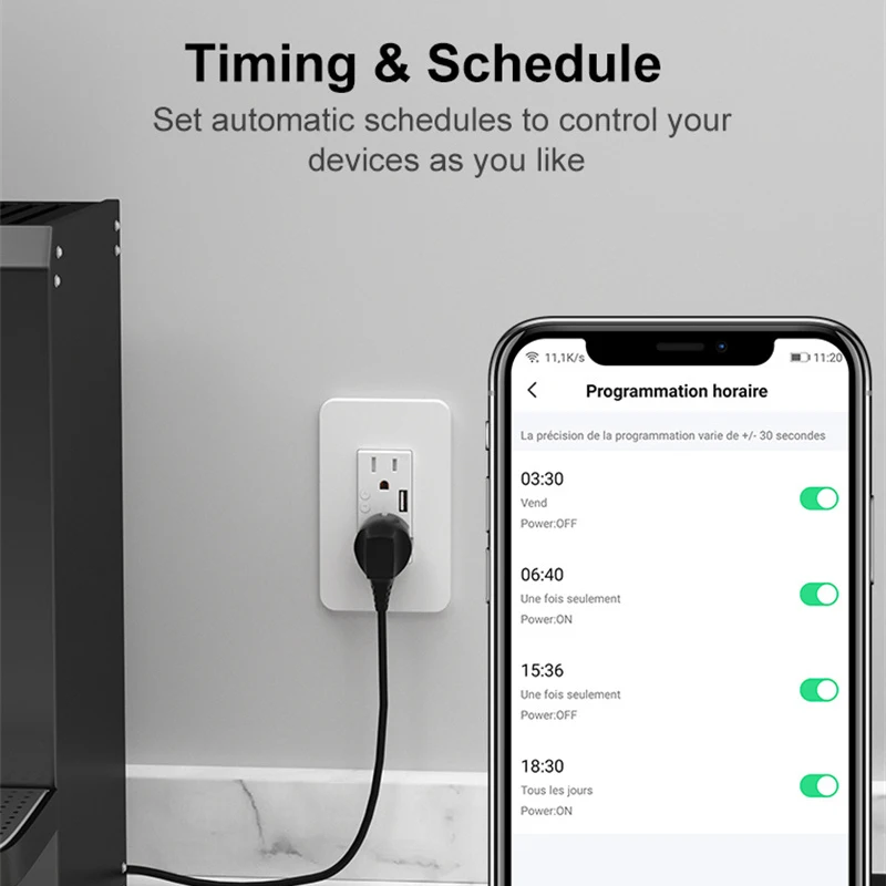 Купить Tuya WiFi USB Wall Outlet US Double Electrical Sockets 5V/2.1A USB Charge On/Off Switch Tuya APP Voice Control Alexa Google Home за 900рублей