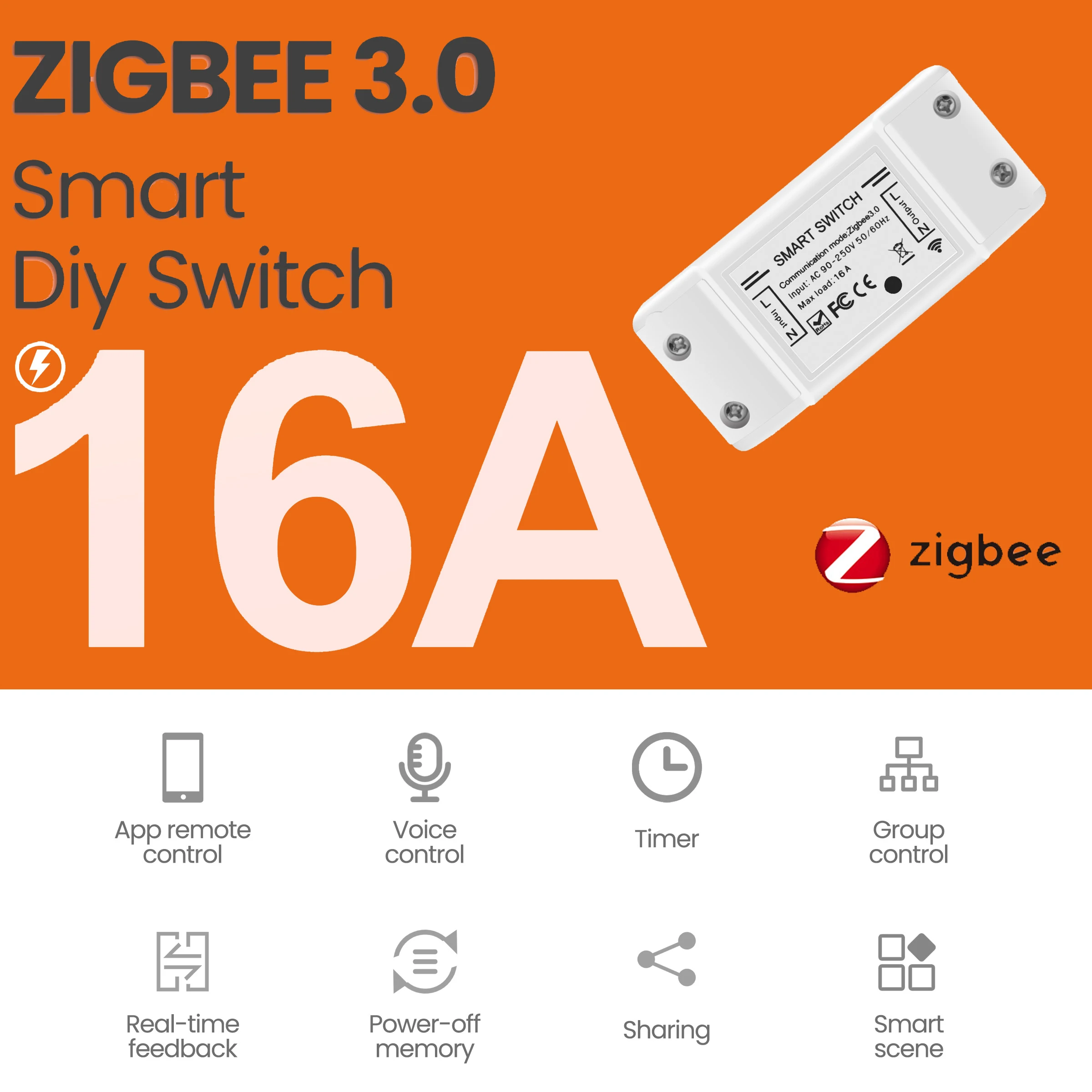 Купить Tuya Zigbee 3.0 16A DIY Smart Wireless Remote Switch Breaker Fan Light Controller Module Smart Life Alexa Google Home Assistant за 1200рублей