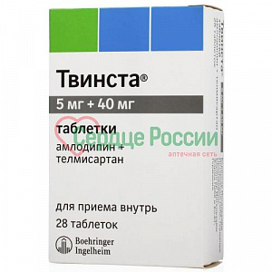 Твинста® (Twynsta®), Гипотензивное средство комбинированное (блокатор «медленных» кальциевых каналов + ангиотензина II рецепторов антагонист) , описание, цены на препарат, заказ в аптеках, состав, способ применения, показания, противопоказания, побочные действия . . .