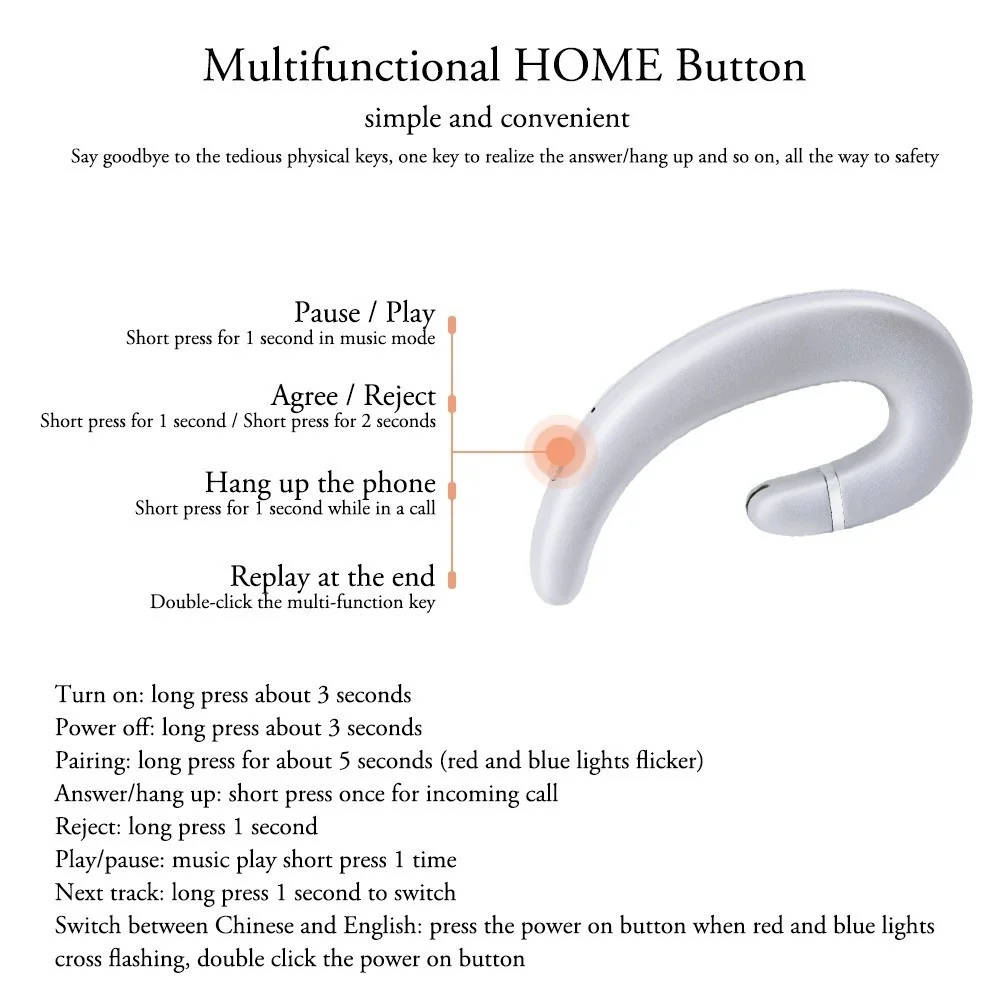 Купить Ultra-slight Bone Conduction Earphone Painless Bluetooth Wireless Earhook Calling Headset for iPhone Xiaomi Samsung Sports Gift за 600рублей