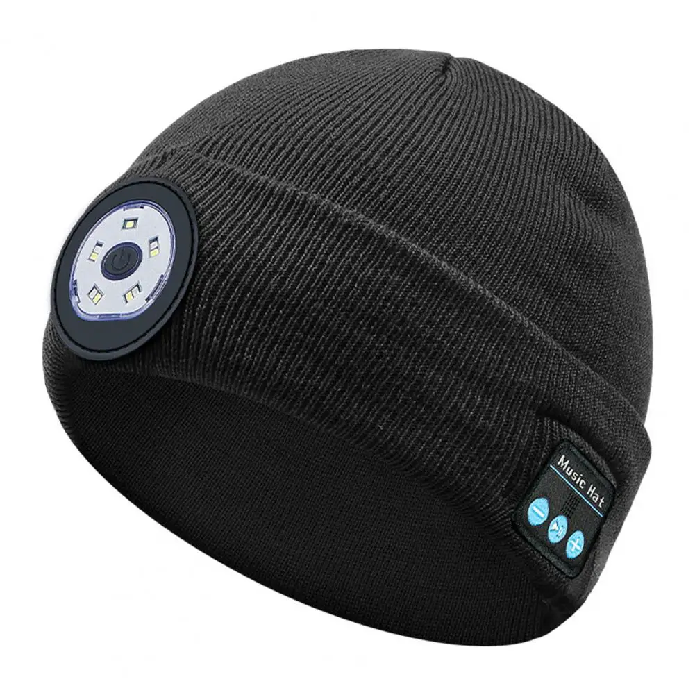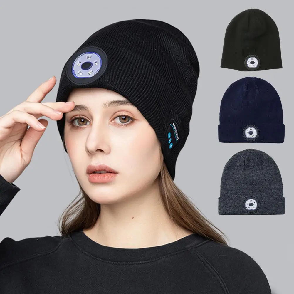 Купить Unisex LED Headlamp Hat Thickened Solid Color USB Charging 3 Modes Autumn Winter Bluetooth-compatible Washable Beanie Hat за 250рублей