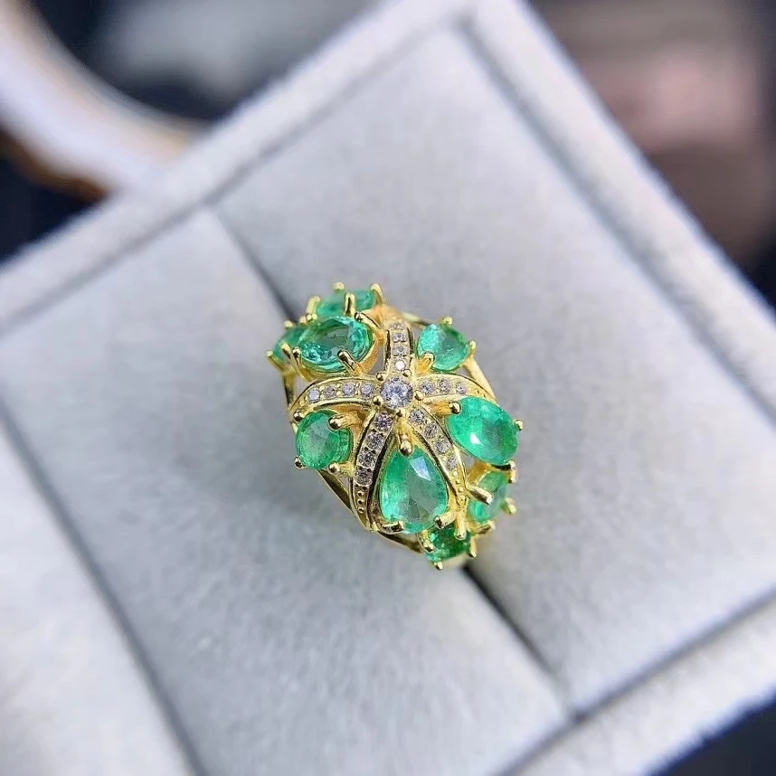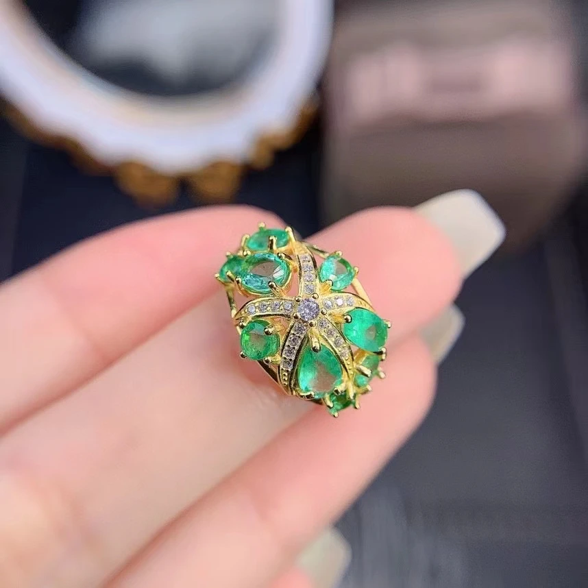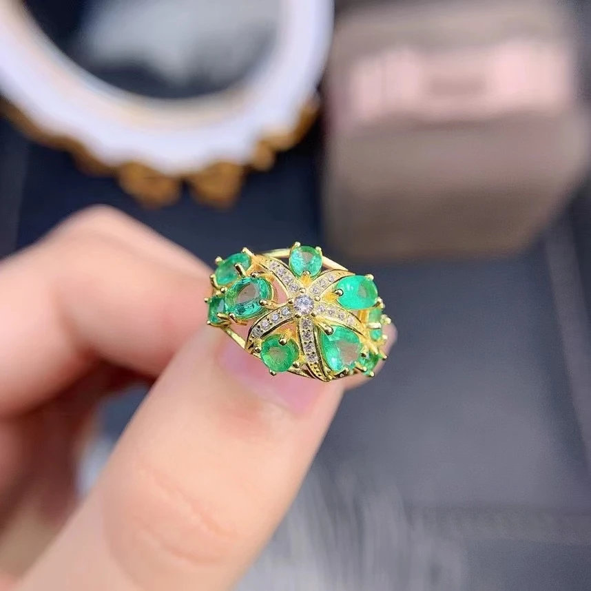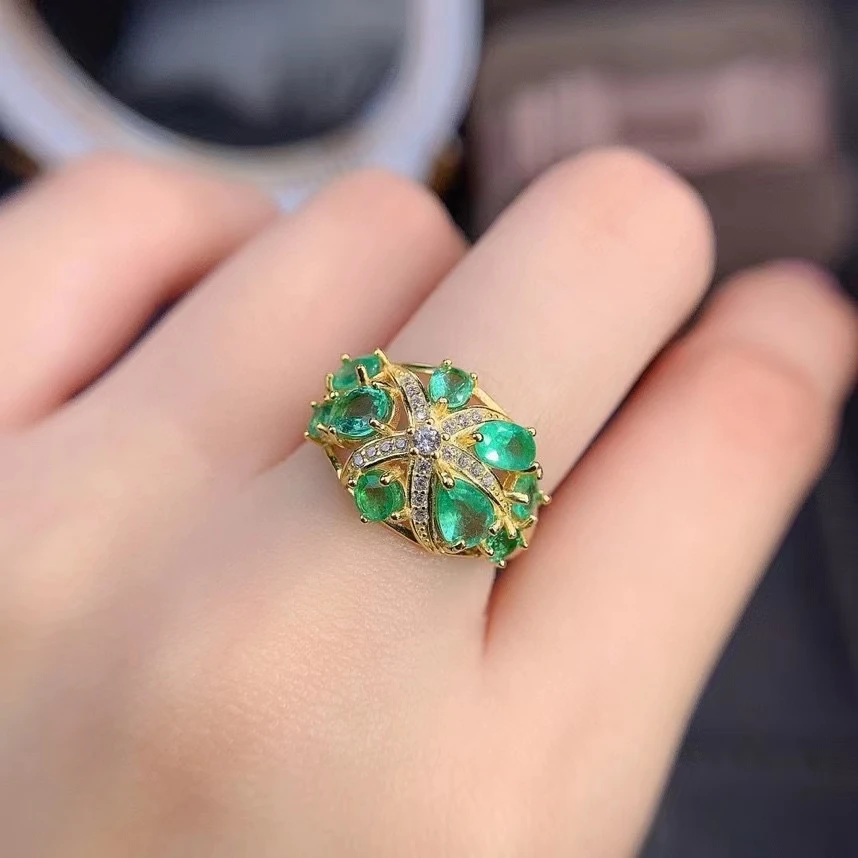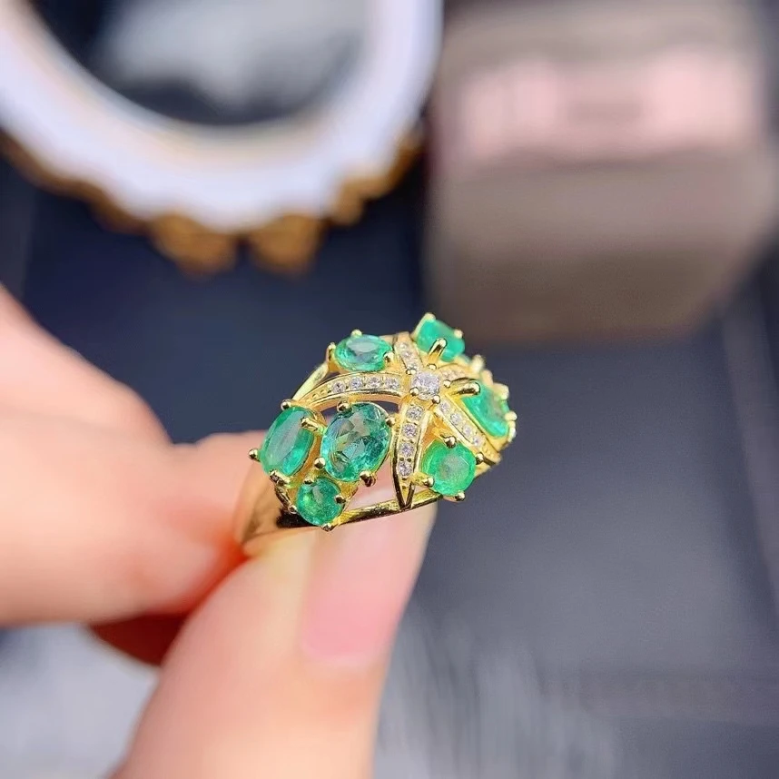 Купить Vintage Classic Natural Emerald Ring 925 Sterling Silver Inlaid Women's Green Gemstones Ring Bride Wedding Engagement Party Gift за 15800рублей