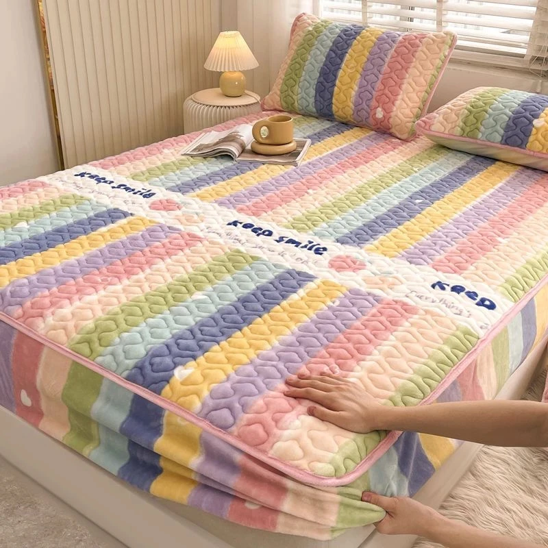 Купить WASART Winter warm velvet printed mattress protector cover quilted thicken elastic fitted sheet style bed protection pad 150/180 за 750рублей