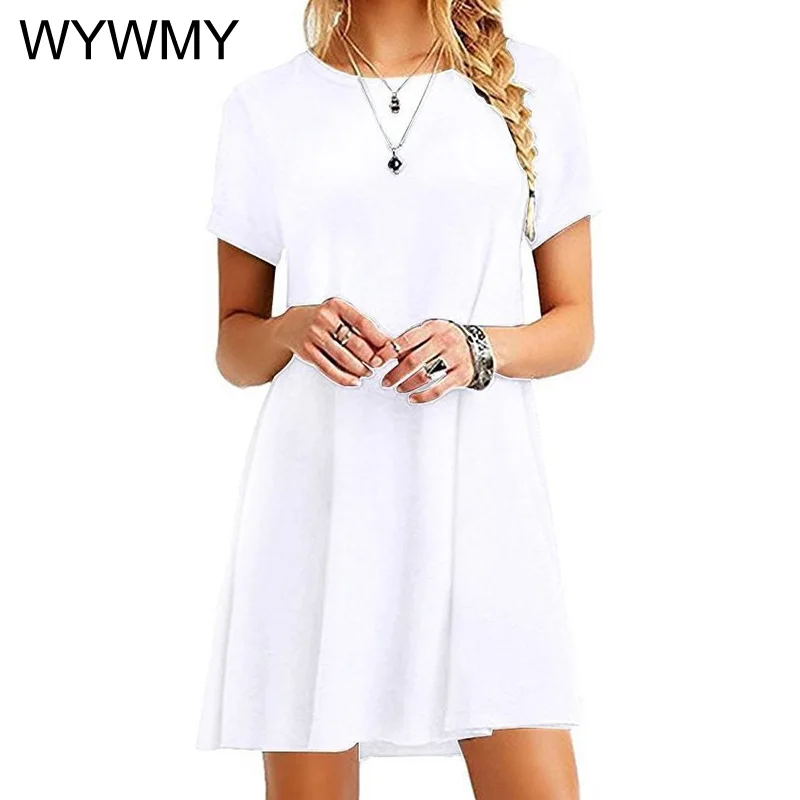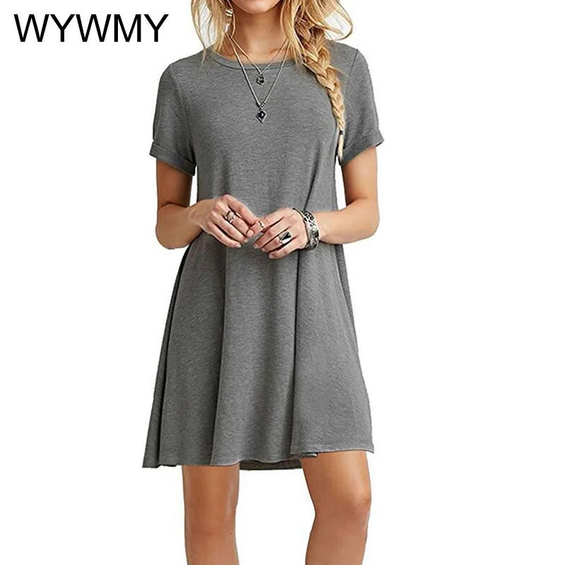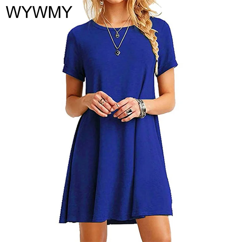 Купить WYWMY 9 Colors Summer Womans Dress Solid Color Short Sleeve Causal Mini Dress Crew Neck Basic Elegant A-line Dresses за 350рублей