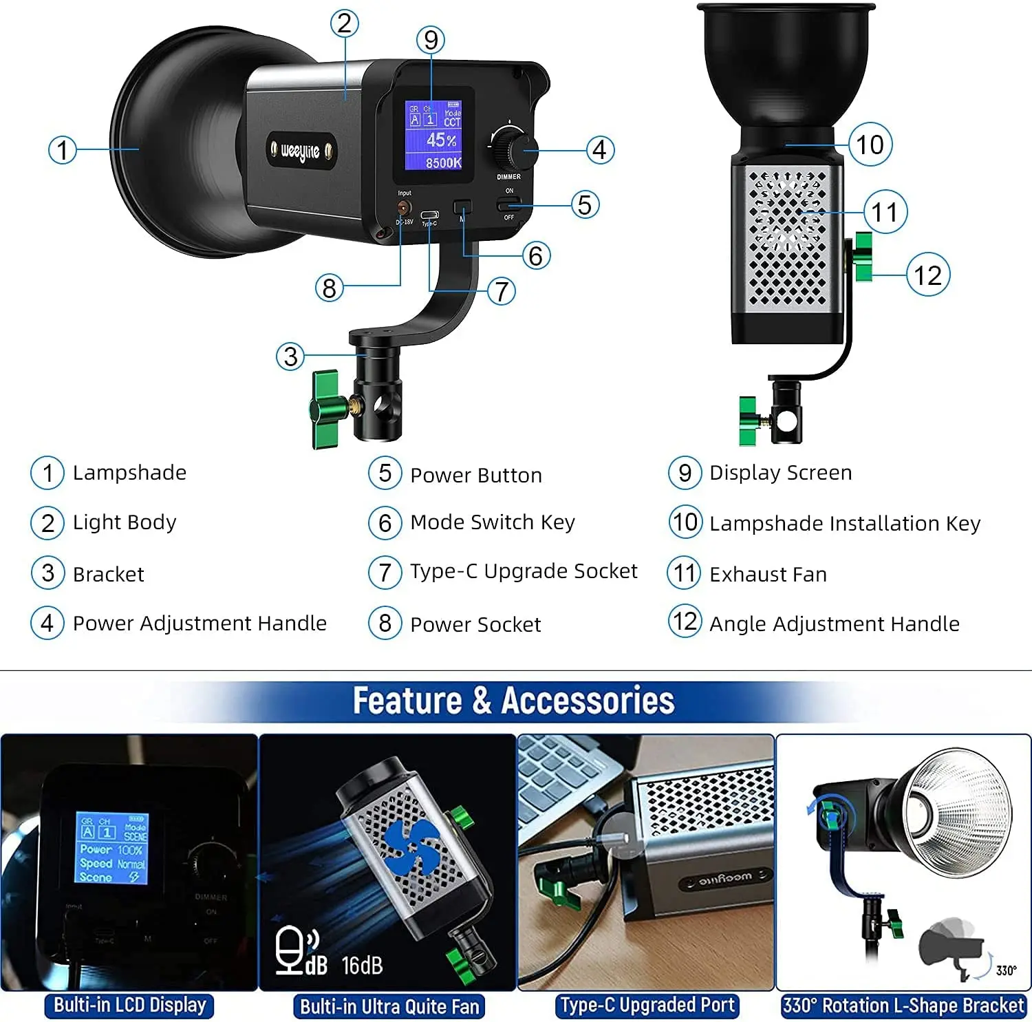 Купить Weeylite 60W LED Continuous Video Light, Bi-Color 2800-8500K Continuous Output Lighting Kit Dimmable LED COB Photography Lights за 11450рублей