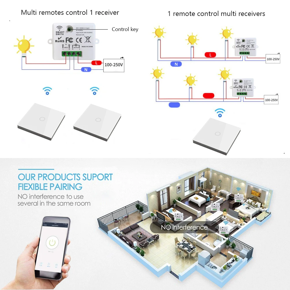 Купить Wifi Tuya Mini Smart Light Switch 433MHZ Wireless Wall Panel Touch Switch 220V 10A Relay Works with Alexa Google Home Smart Life за 450рублей