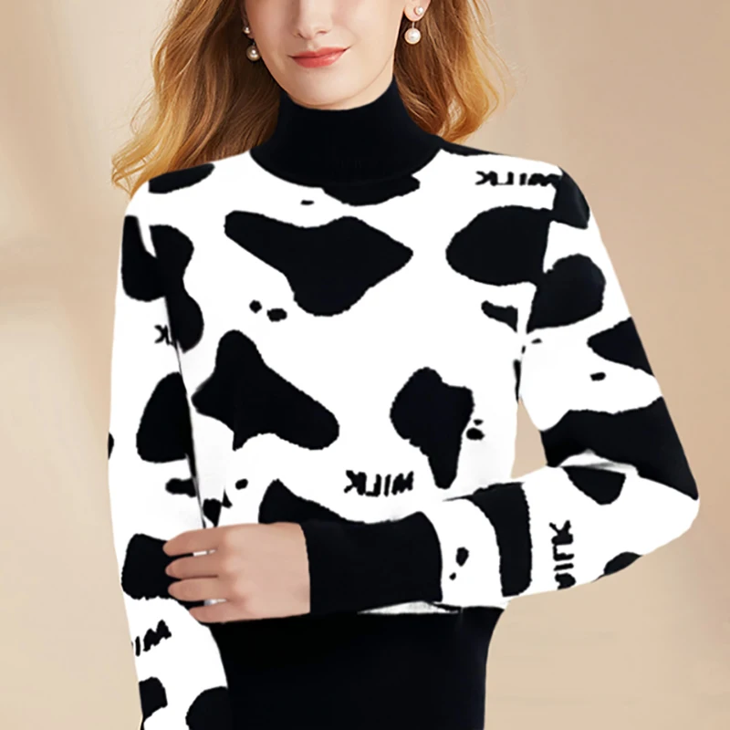 Купить Winter Cow Zebra Striped Slim Soft Warm Jersey Cropped Knitted Pullover Sweater Oversize Women Jumper turtleneck 2022 Sweaters за 800рублей