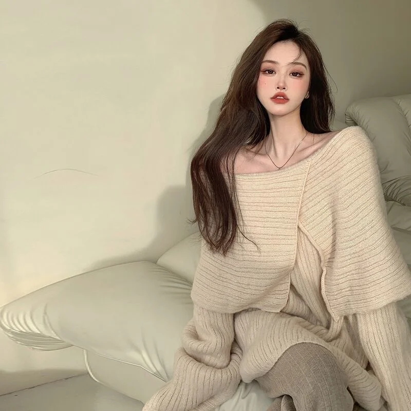 Купить Winter Loose Design Feeling Small Retro Japanese Slouchy Off Shoulder Knitwear Korean Version Casual Soft Waxy Sweater Women за 1650рублей