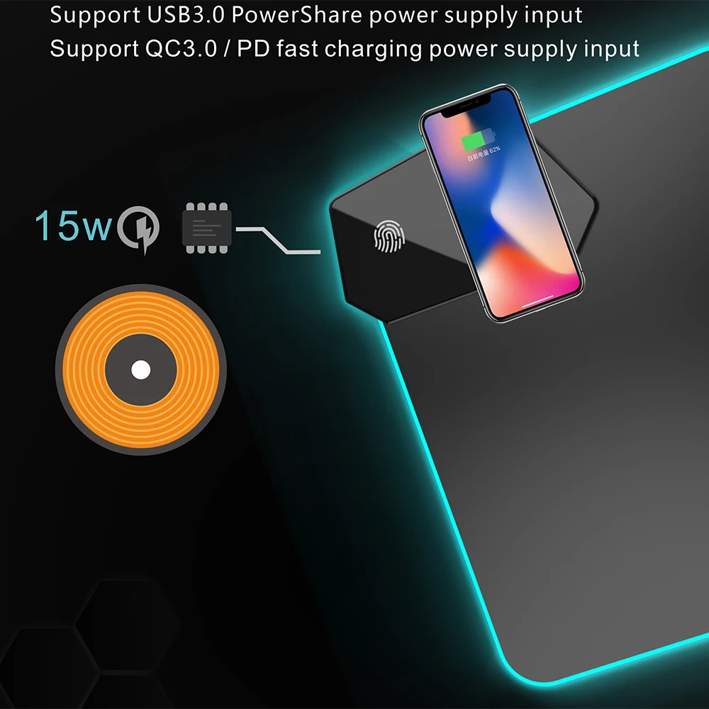 Купить Wireless Charging Mouse Pad Gamer Mousepad Oversized RGB Luminous Desk Mat Computer Laptop Keyboard Non-slip Glowing LED Cushion за 1800рублей