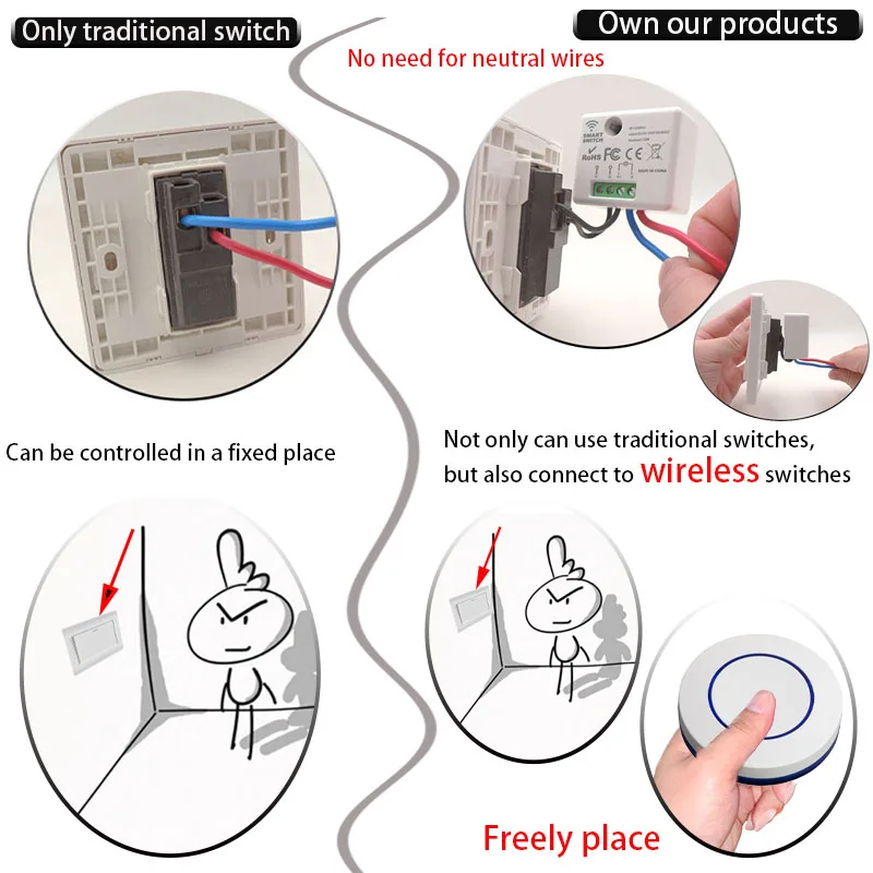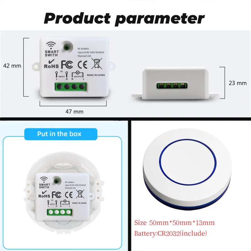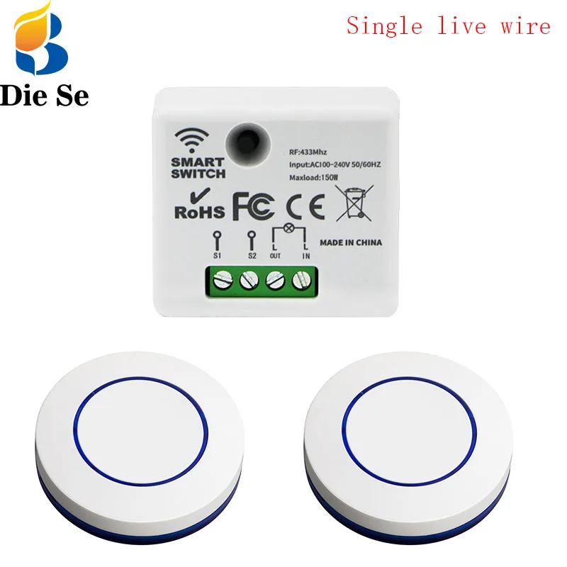 Купить Wireless Light Switch 433mhz Rf 220V Relay Receiver Without Neutral Line and Mini Round Push Button Wall Panel Switch,for LED за 300рублей