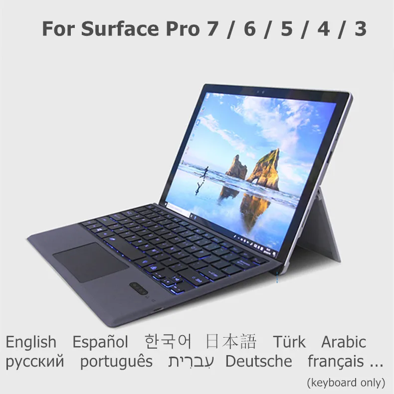 Купить Wireless Touchpad Keyboard for Microsoft Surface Pro 6 Pro 5 Pro 7 Pro 4 Pro 3 Korean Spanish Russian Backlit Keyboard Cover за 1400рублей