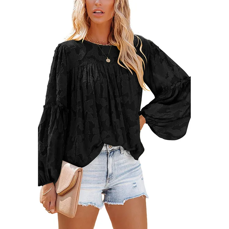Купить Women 2022 Spring and Autumn New Loose Hedging Fashion Temperament Top Fashion Women's Round Neck Pleated Solid Color Shirt за 650рублей