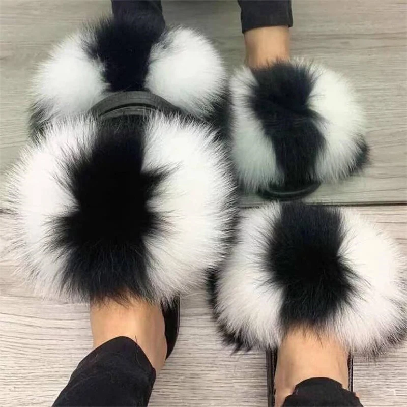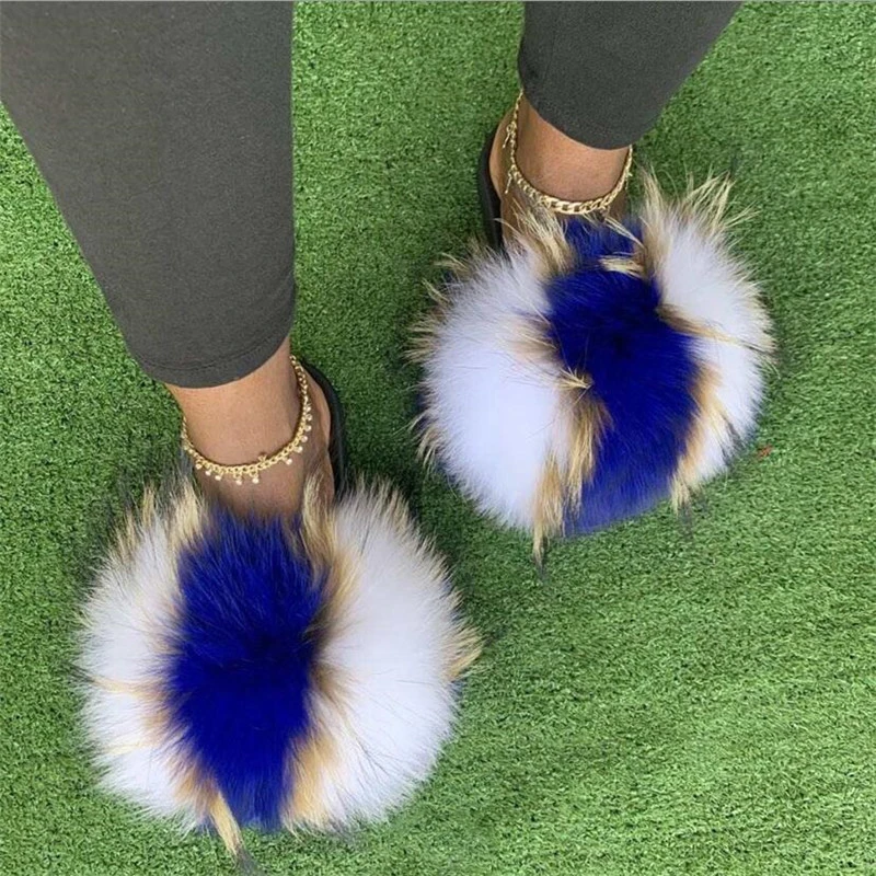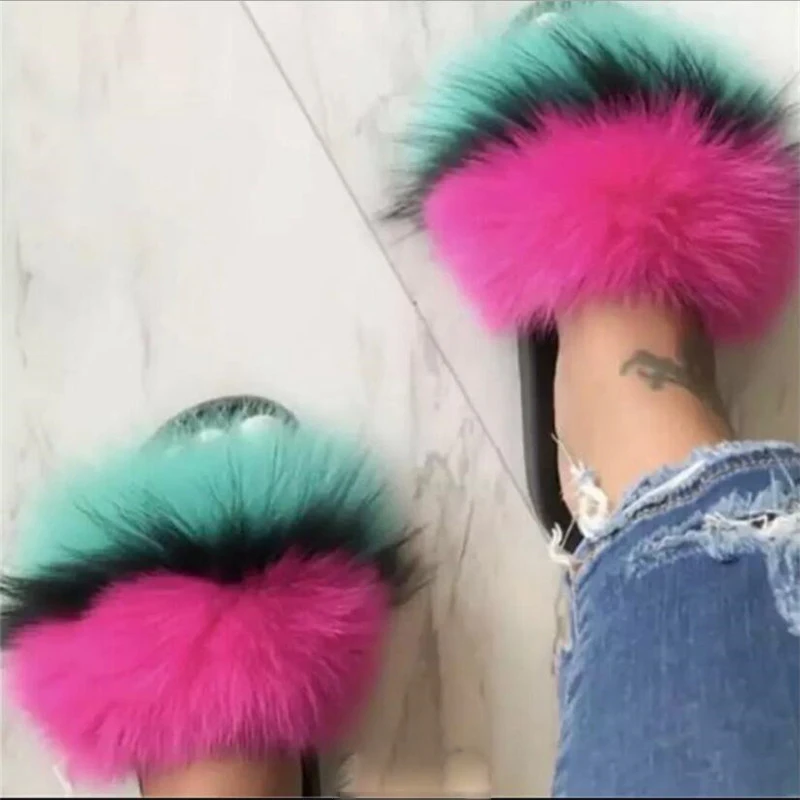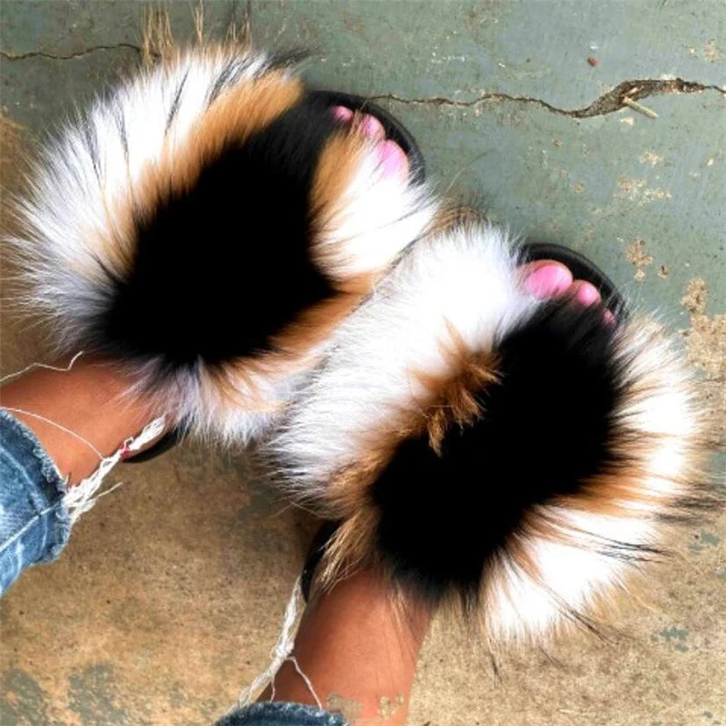 Купить Women Extra Plush Fur Slides Mixed Color Fuzzy Fur Sandals Lovely Girl's Summer Beach Flip Flops Designer Furry Slippers Shoes за 400рублей