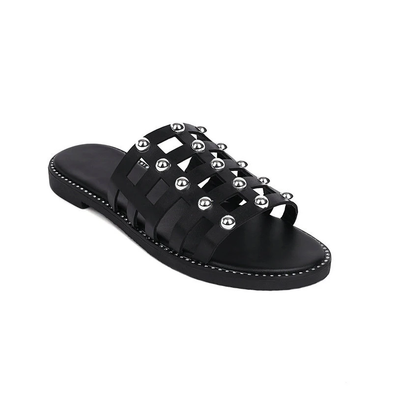 Купить Women Hollow Out Rivet Grid Slippers Female Simplicity Summer Solid Slides Ladies Open Toe Fashion Casual Flat Plus Size за 750рублей