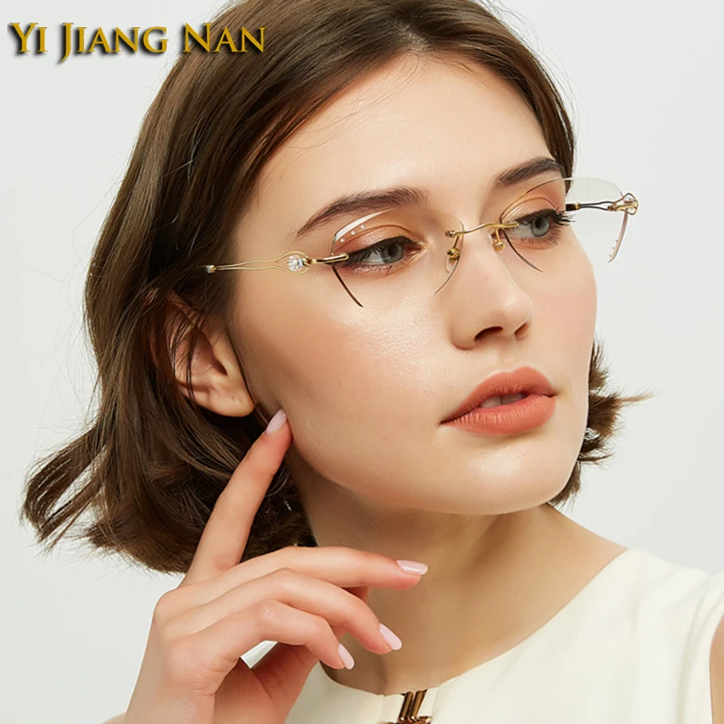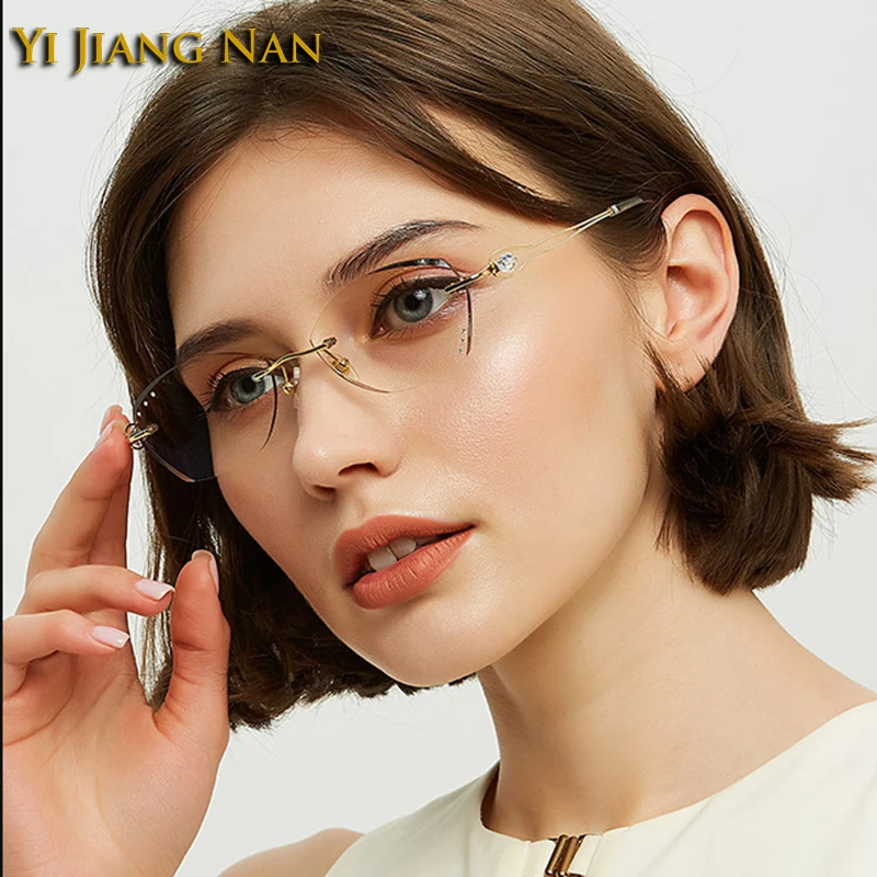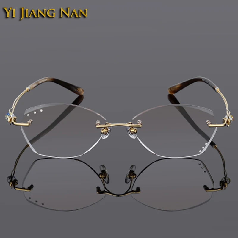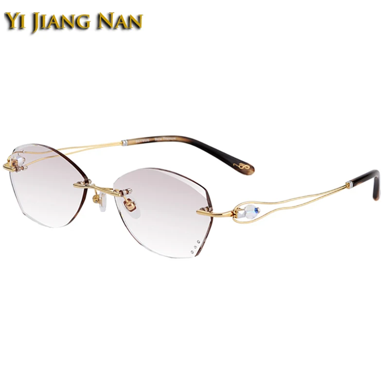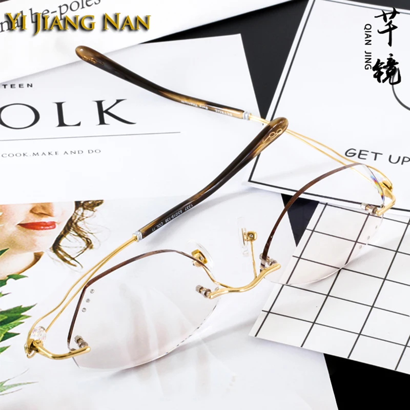 Купить Women Pure Titanium Optical Glasses Frame Tint Gray Prescription Lenses Eyeglasses Rimless Spectacle Light Weight Gafas de Mujer за 1550рублей