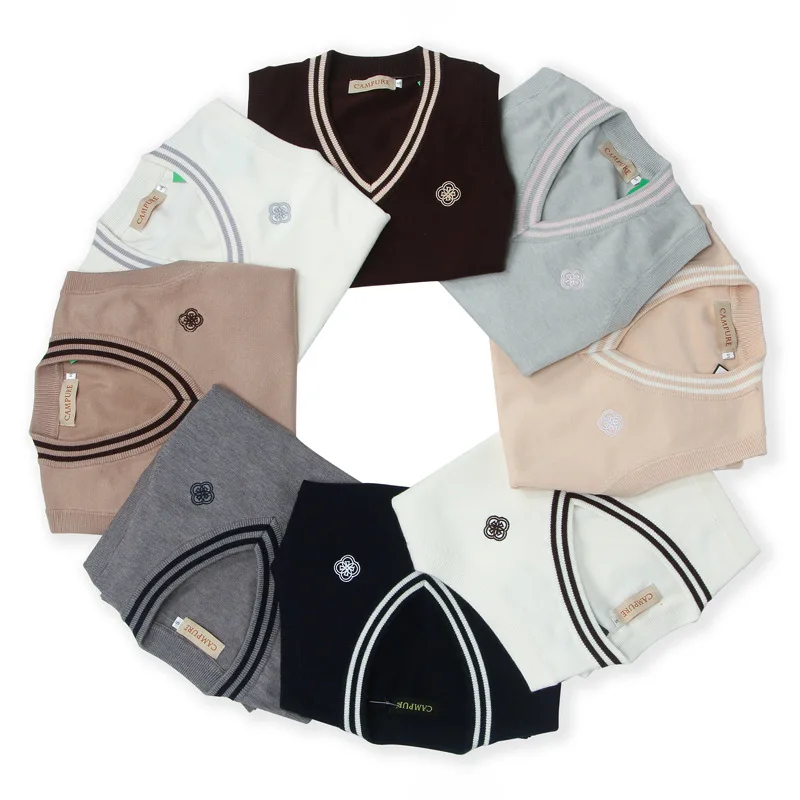 Купить Women Sleeveless Casual Preppy Style Knitted Pullover Sweater Girl Vest Spring Autumn V-Neck Solid Loose Pullover Sweater Female за 400рублей