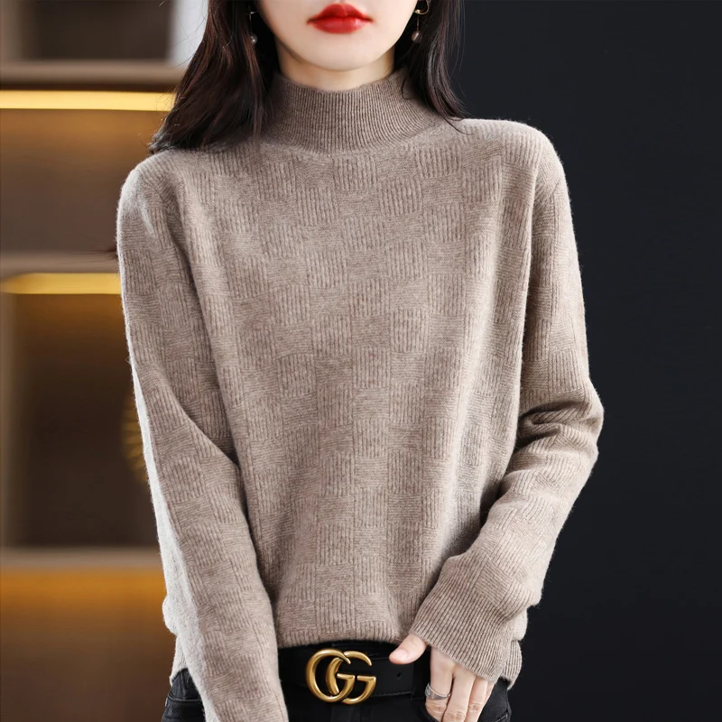 Купить Women's Square Pullover Sweater Half Turtleneck Knit High Quality Soft And Comfortable Versatile 100% Wool Chic Bottoming Shirt за 1650рублей