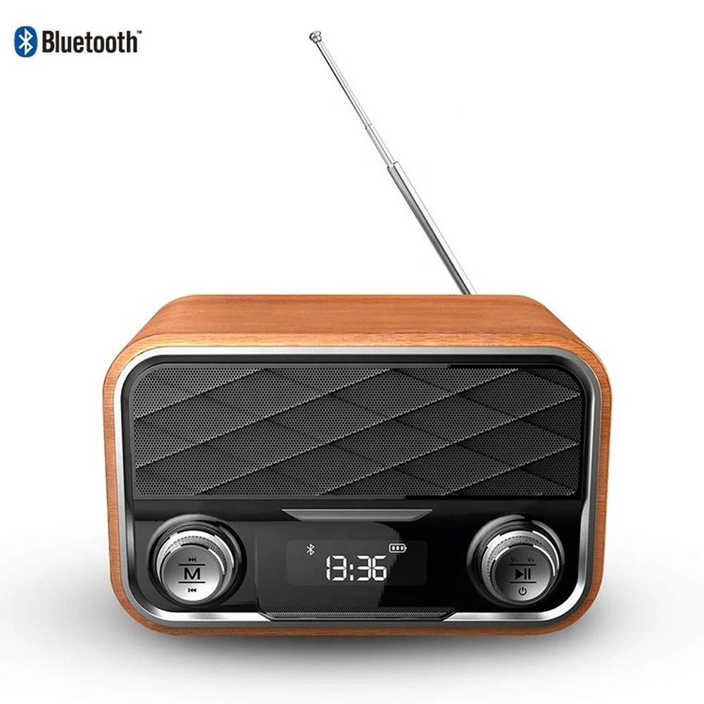 Купить Wooden Bluetooth Speaker Desktop Clock Subwoofer FM Radio with Wireless Charging Retro Small Speaker за 2350рублей