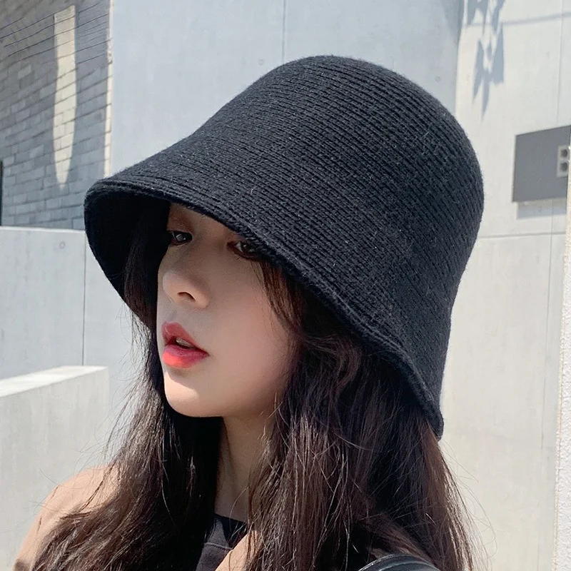 Купить Wool Fisherman Hat Female Wild Basin Hat Korean Version of The Tide Japanese Hat Retro Autumn and Winter Knitted Bucket Hat за 500рублей