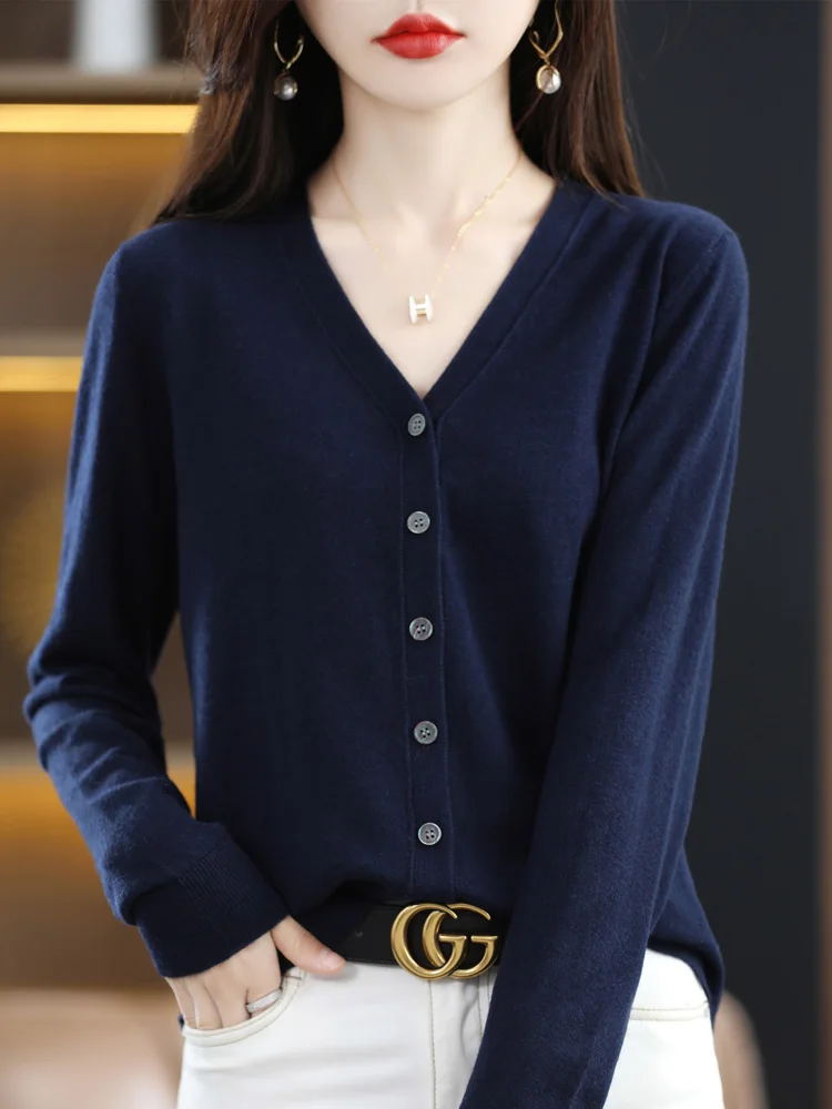 Withered Pullover Women Tops Spring Sweater Women England Style Simple Solid V neck Loose Long SLeeve Knitted T Shirt Women po l 10 05