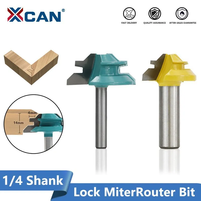Купить XCAN Lock Miter Router Bit 45 Degree 1/4" 1/2 Shank Wood Milling Cutter Carbide Mill for Woodworking 1pc за 300рублей